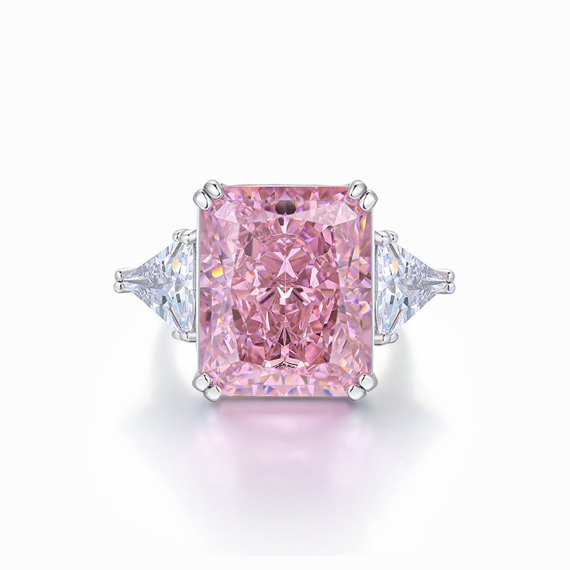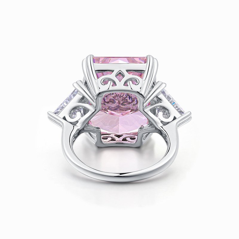 High carbon diamond fashion all over s925 sterling silver vivid pink cherry blossom pink ice flower cut large carat ring