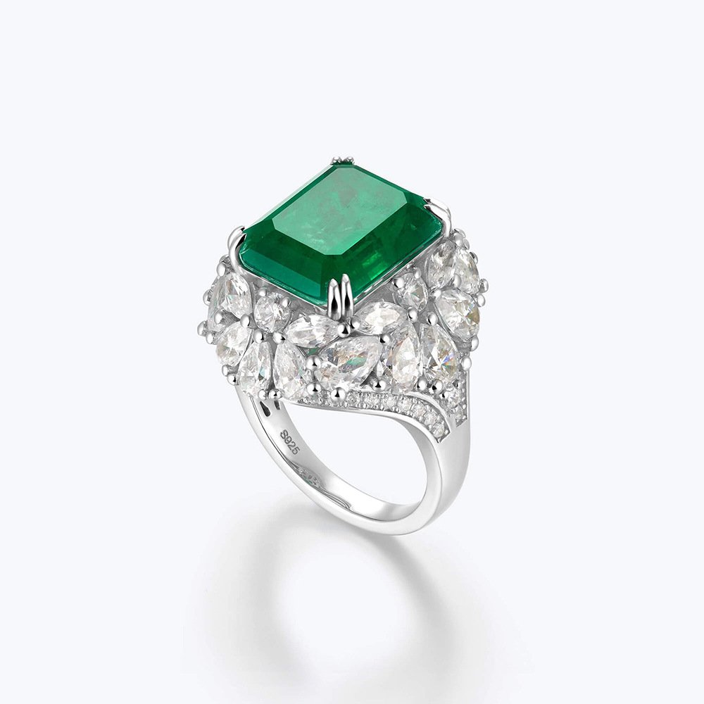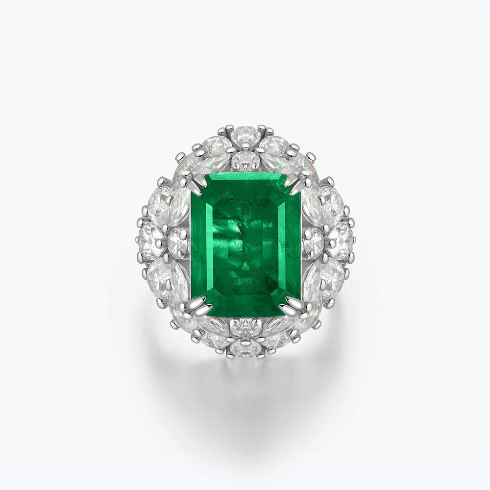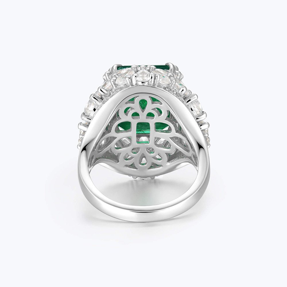 High-end Fashion Wood Green 925 Sterling Silver Jewelry Emerald Halo Ring