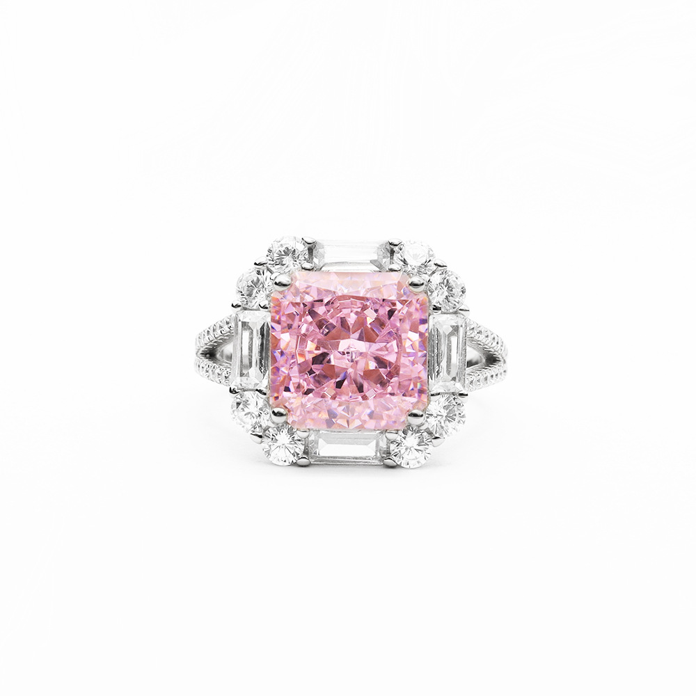 High-grade 925 sterling silver luxury 5CT high carbon diamond ring cherry pink diamond vivid pink ring