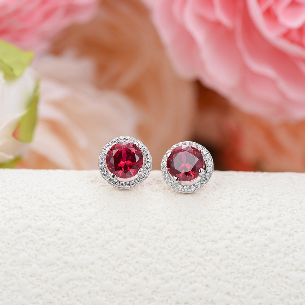 High-grade earrings 925 silver colored gemstone pigeon blood round literary retro women's earrings