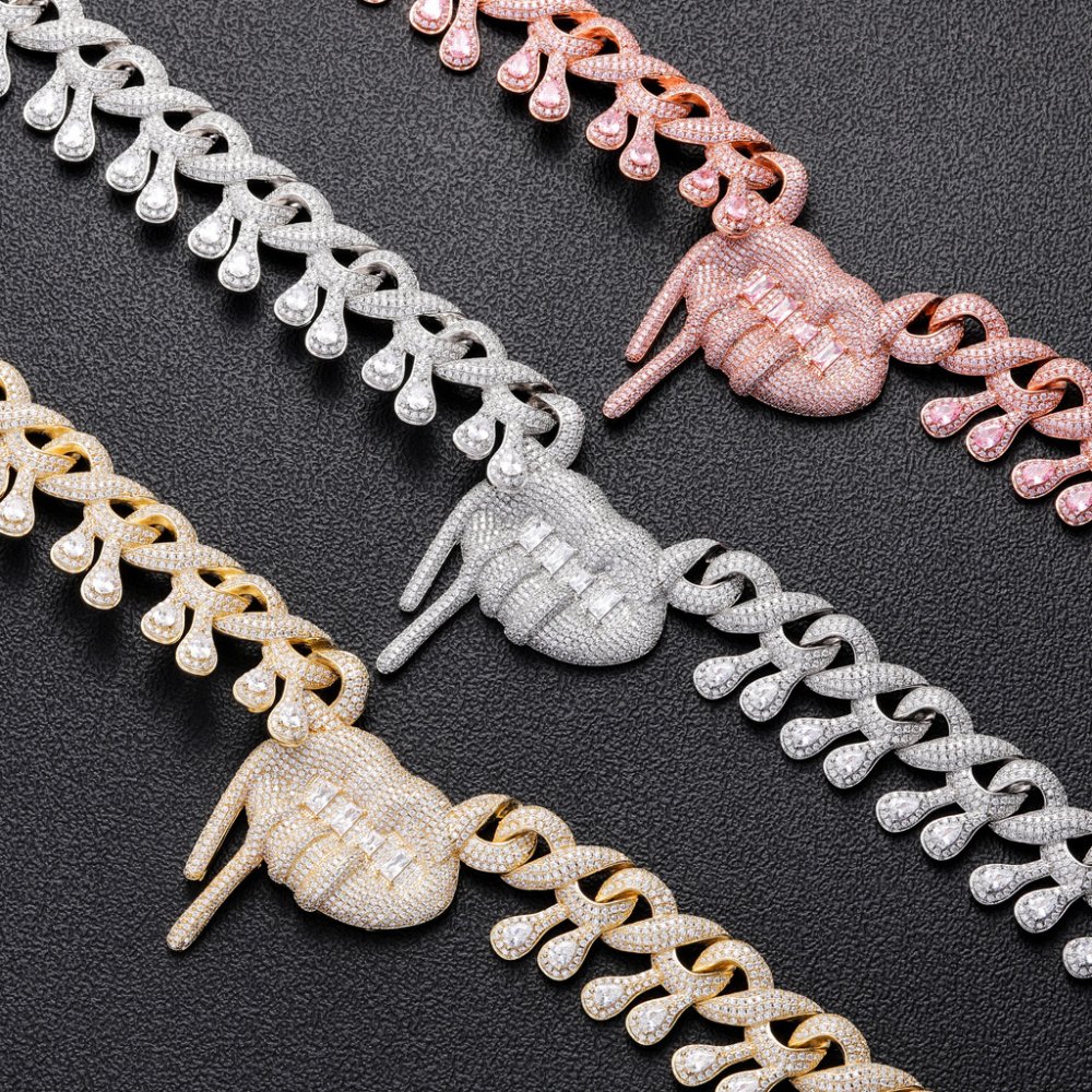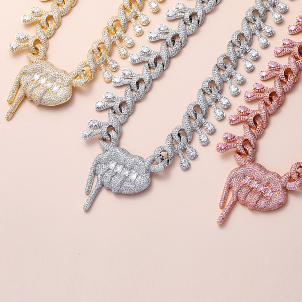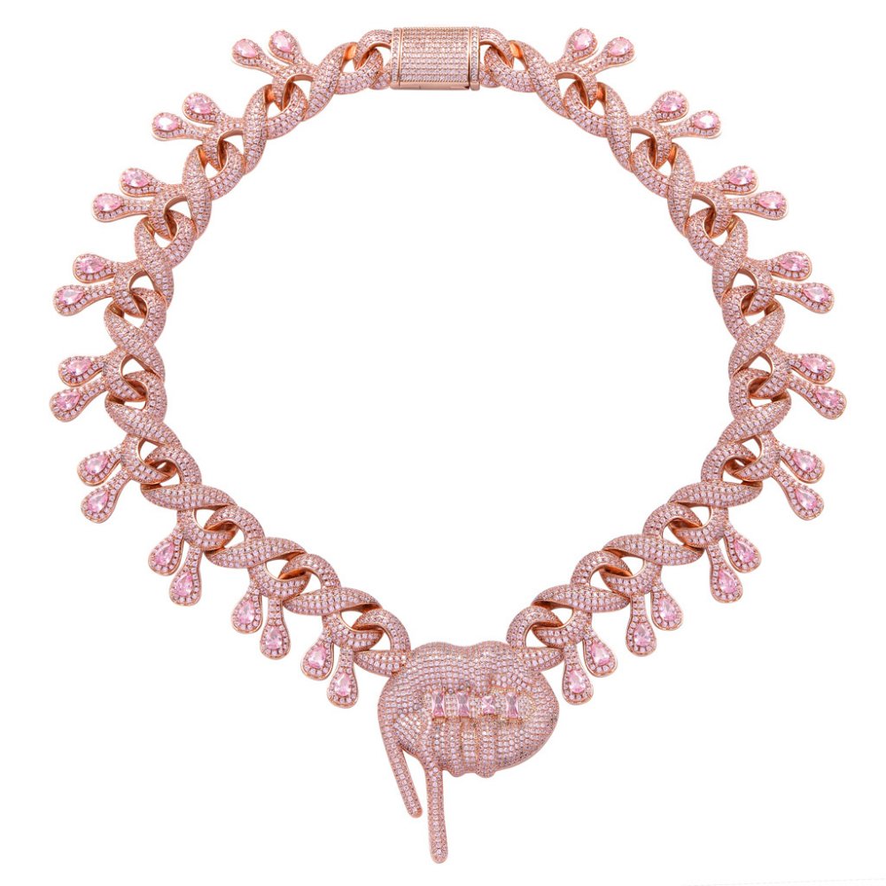 Hip-hop men's lips drooling Cuban chain nightclub disco personality exaggerated 27mm full diamond water drop necklace