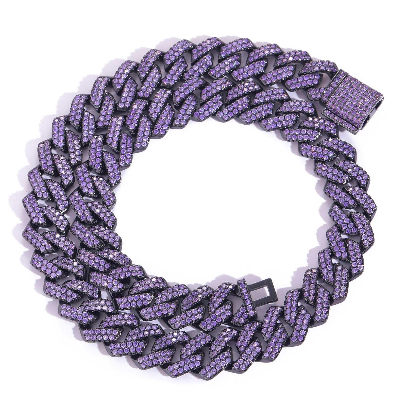 Hip-hop men's purple Cuban chain 15mm double row purple zircon real gold electroplated diamond clavicle chain