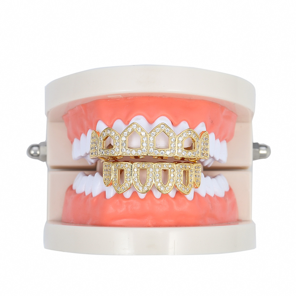 Hollow micro-inlaid zircon braces Halloween teeth props holiday gifts funny hip-hop braces