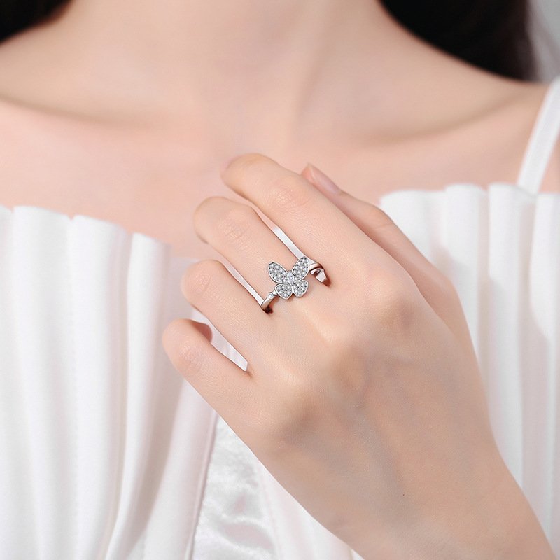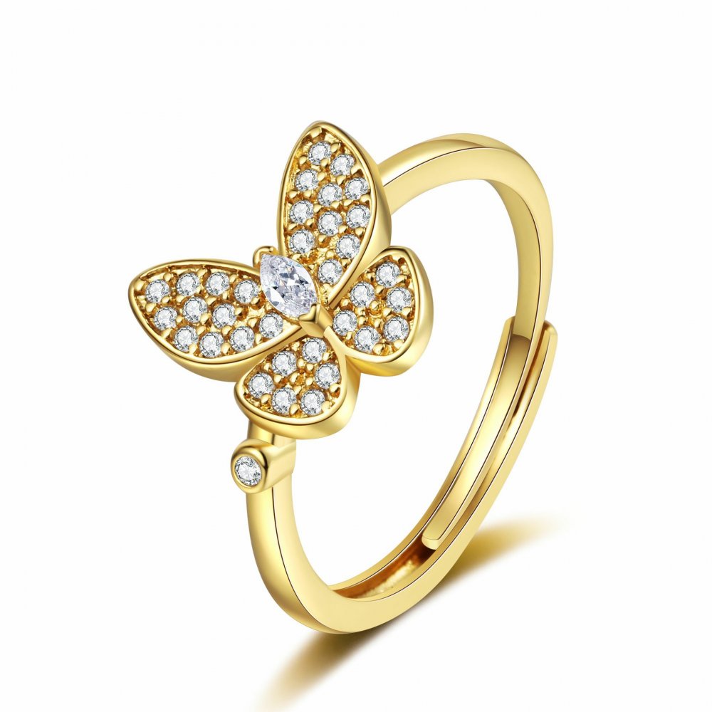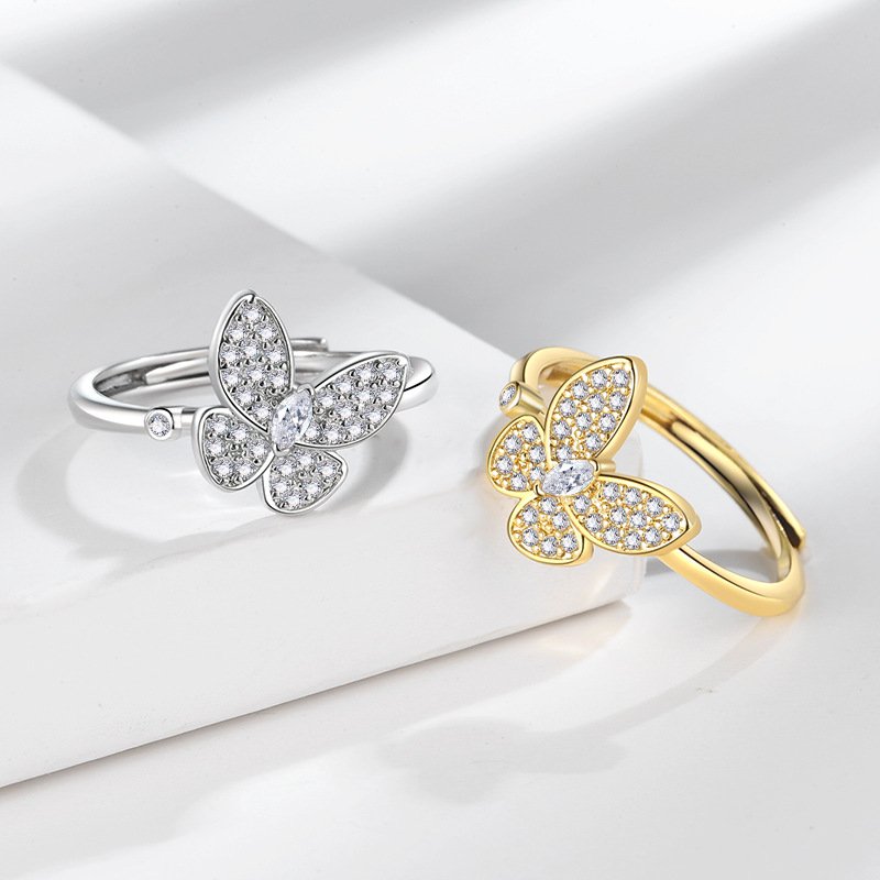 Hot Selling Fashionable Copper Inlaid Zirconia Butterfly Ring Female Niche Design Open Ring
