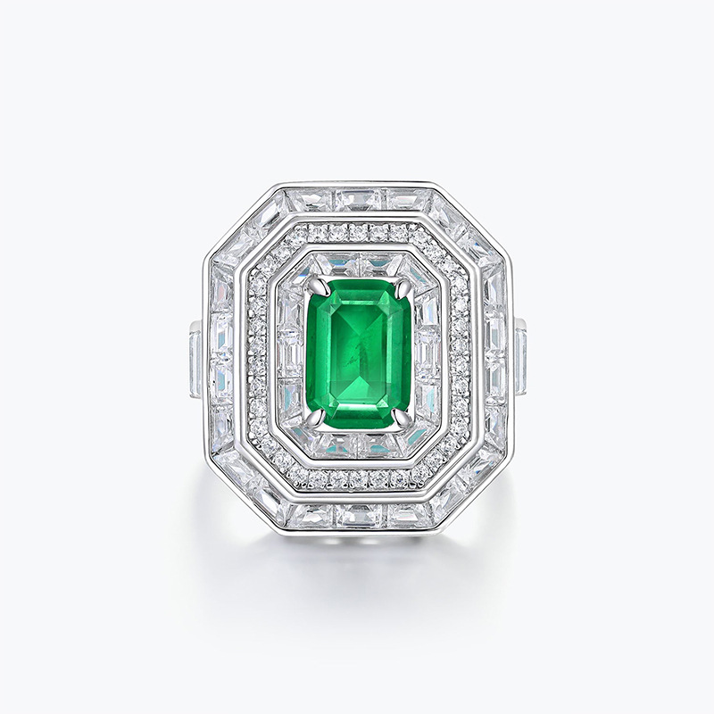 Hot selling high quality 925 sterling silver jewelry emerald halo ring