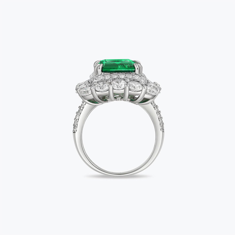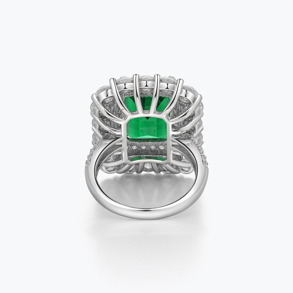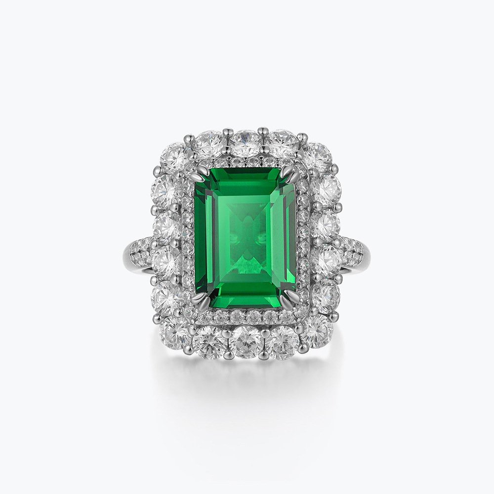 Hot selling light luxury style 925 sterling silver jewelry emerald halo ring