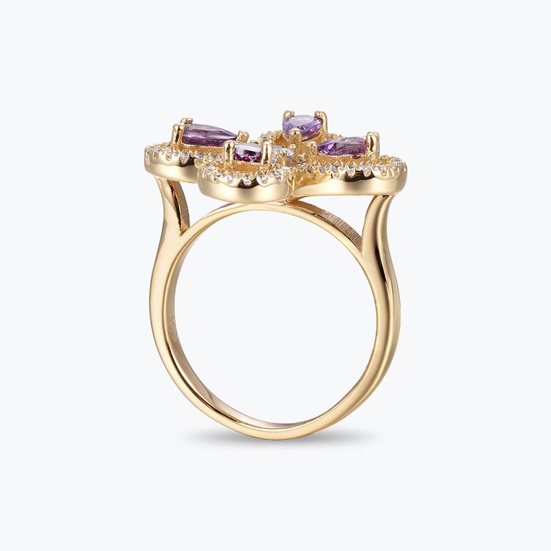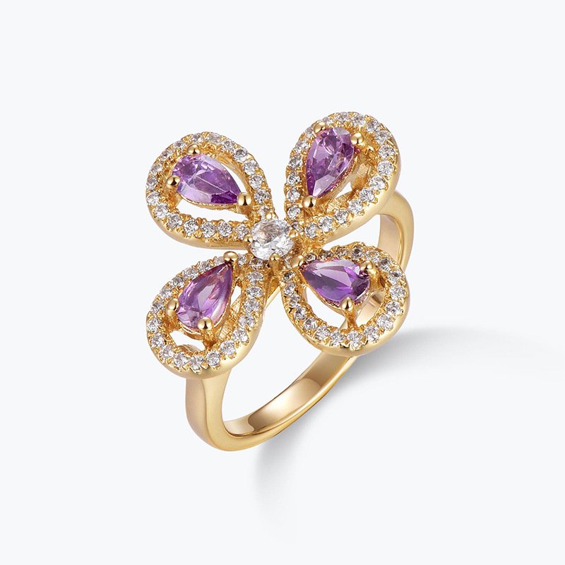 Hot selling popular high quality 925 sterling silver jewelry purple zircon teardrop shaped flower halo ring