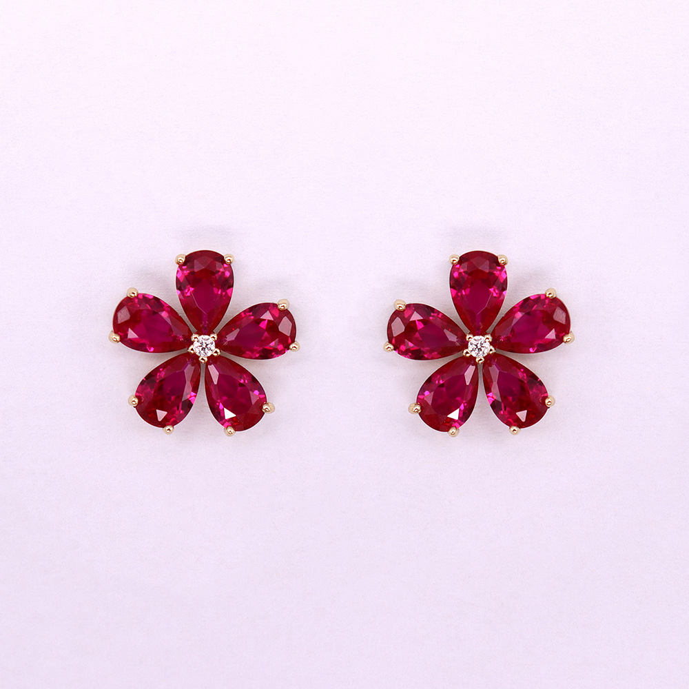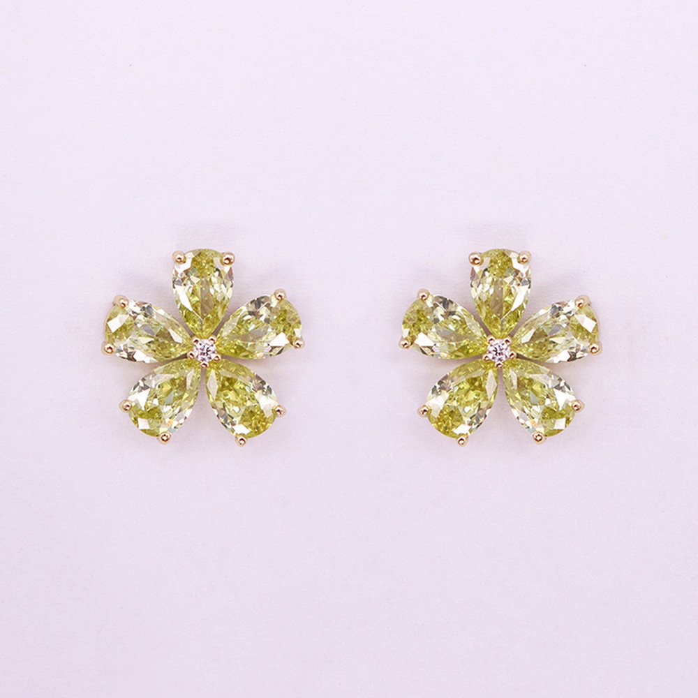 Hot selling simple style petal zircon 925 silver needle ear needle
