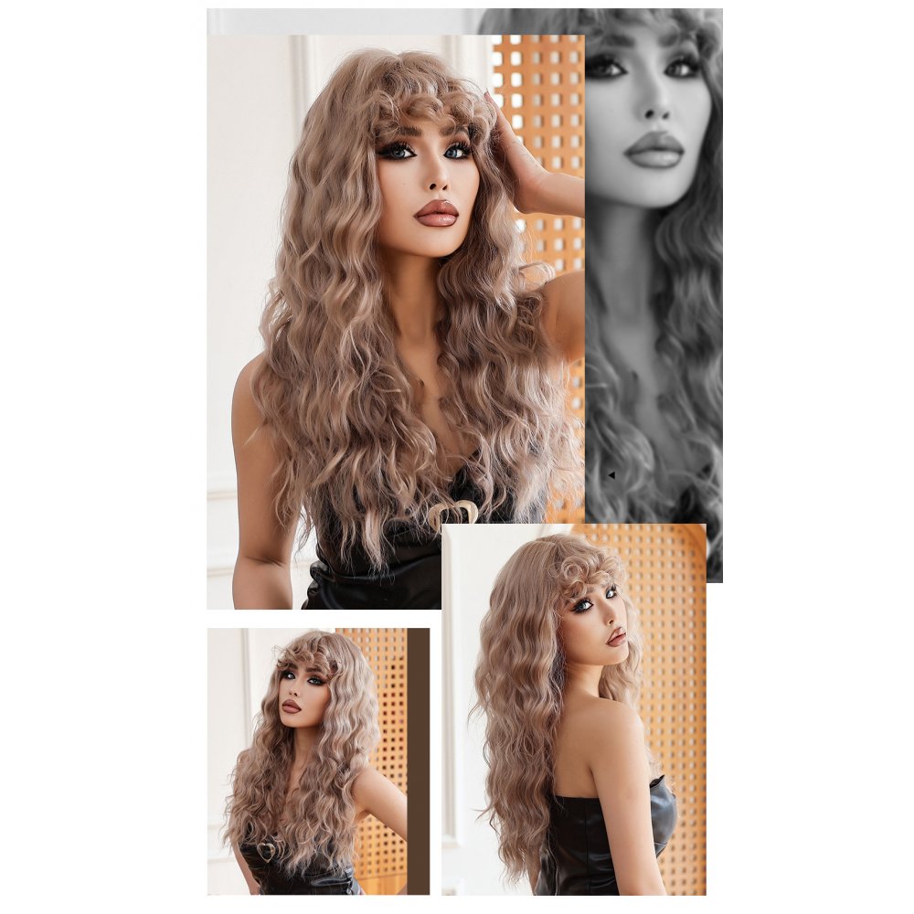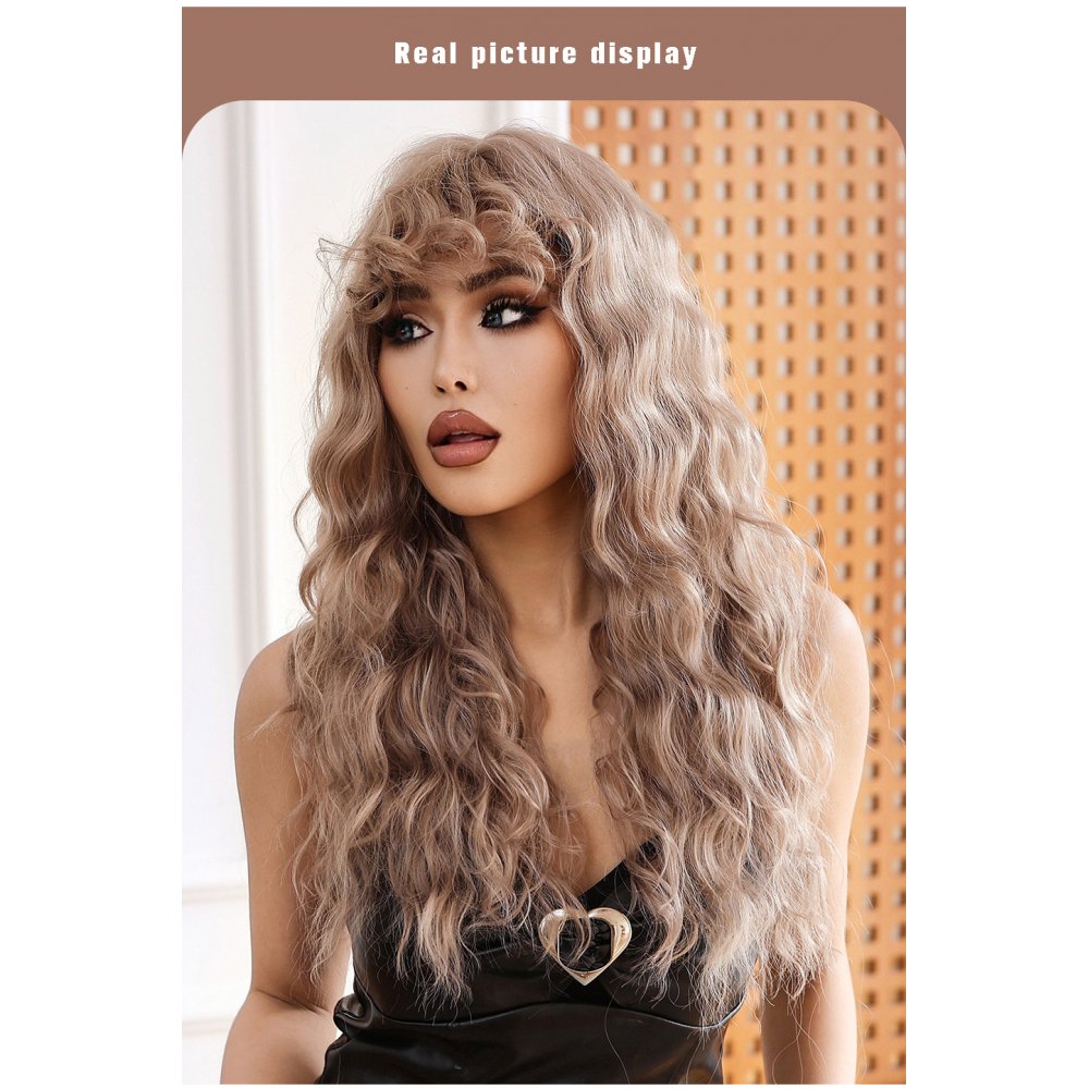 Light brown air bangs wool long curly hair age-reducing Lolita wig