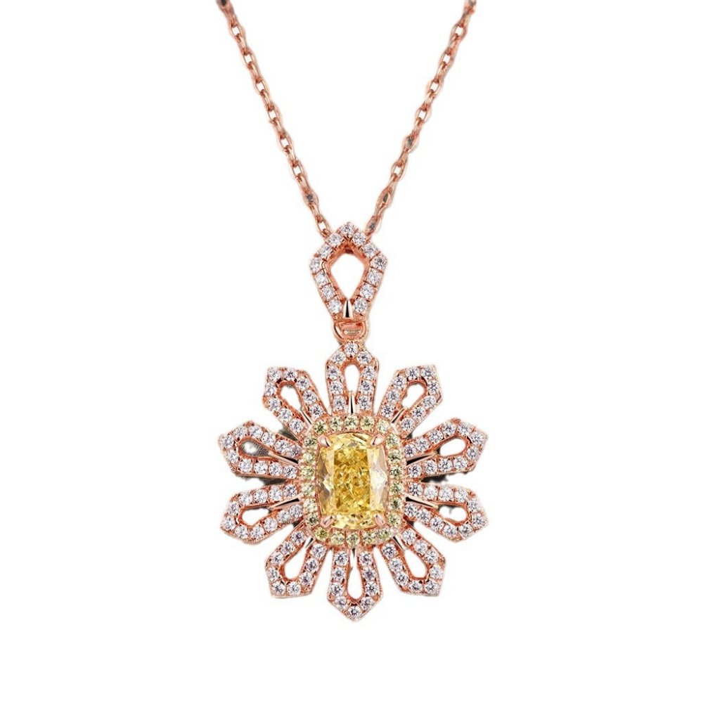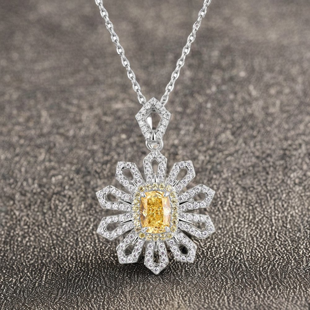 Light luxury high-end temperament niche S925 silver small sugar cube flower shaped necklace female high carbon diamond necklace