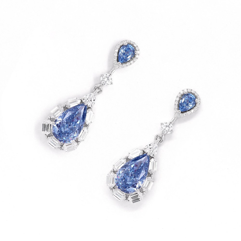 Light luxury high-grade water drop blue high carbon diamond S925 silver female temperament earrings blue earrings