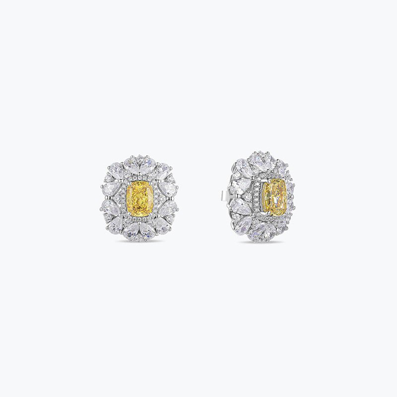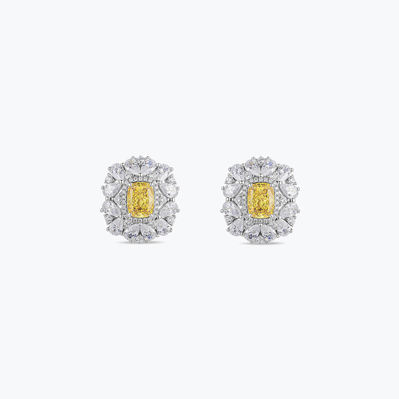 Light luxury new fashion 925 silver plant flower bright yellow earrings micro inlaid zircon earrings