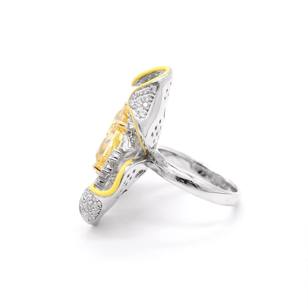 Light luxury simple vivid yellow high carbon diamond small cube ice flower cut yellow diamond flower ring whole body S925 color