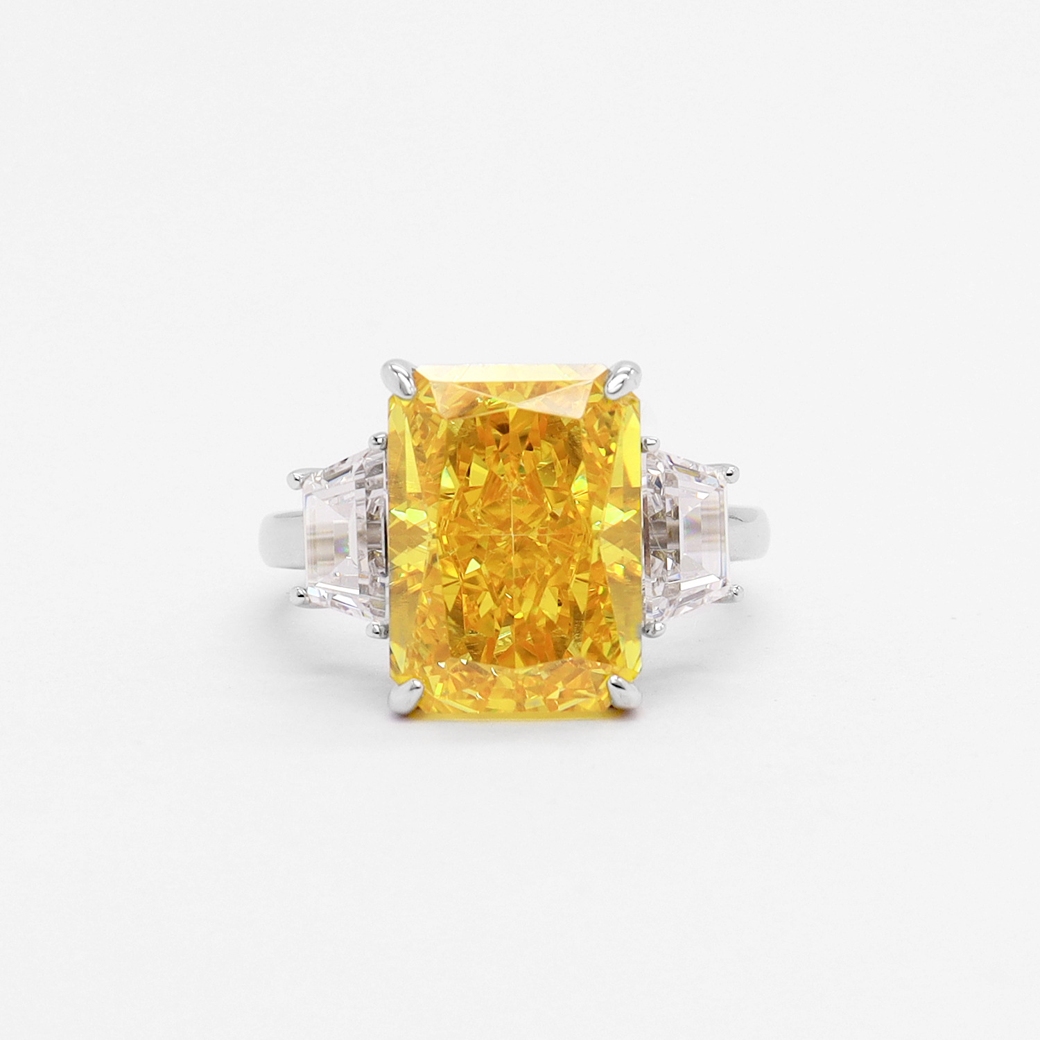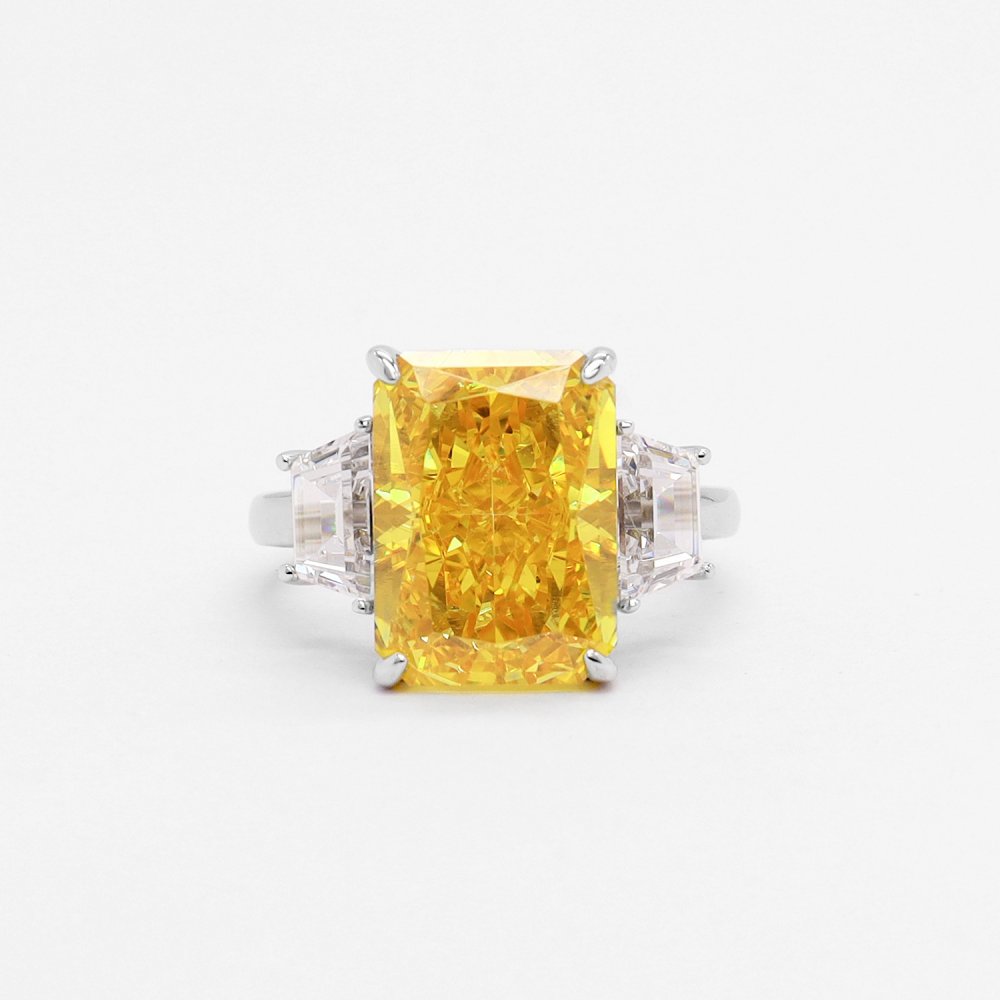 Luxurious and fashionable vivid yellow S925 sterling silver ring inlaid with imported high carbon diamonds for women