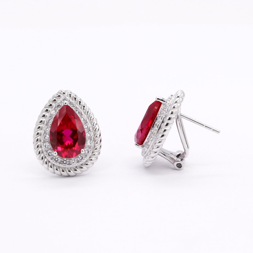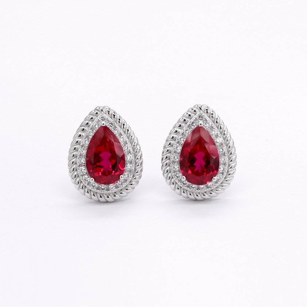 Luxury high-grade earrings 925 silver colored gemstone pigeon blood red teardrop-shaped temperament women's earrings