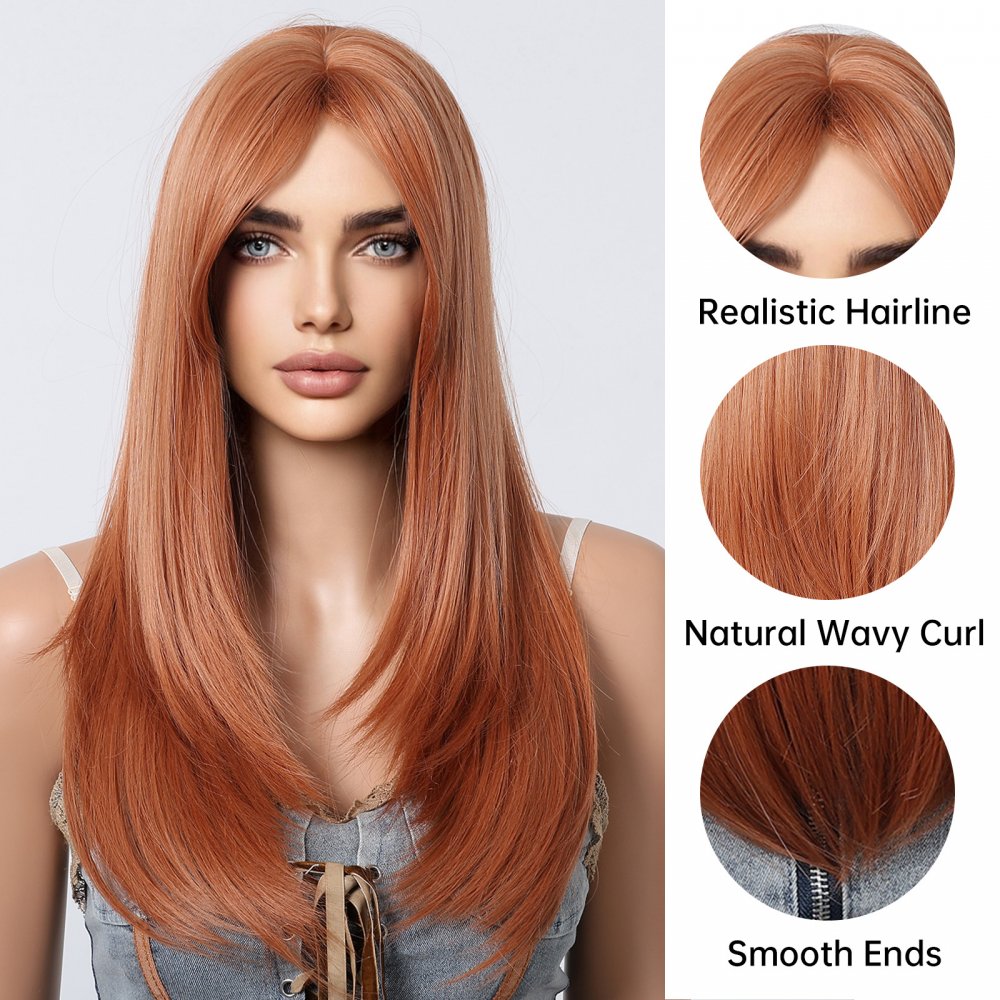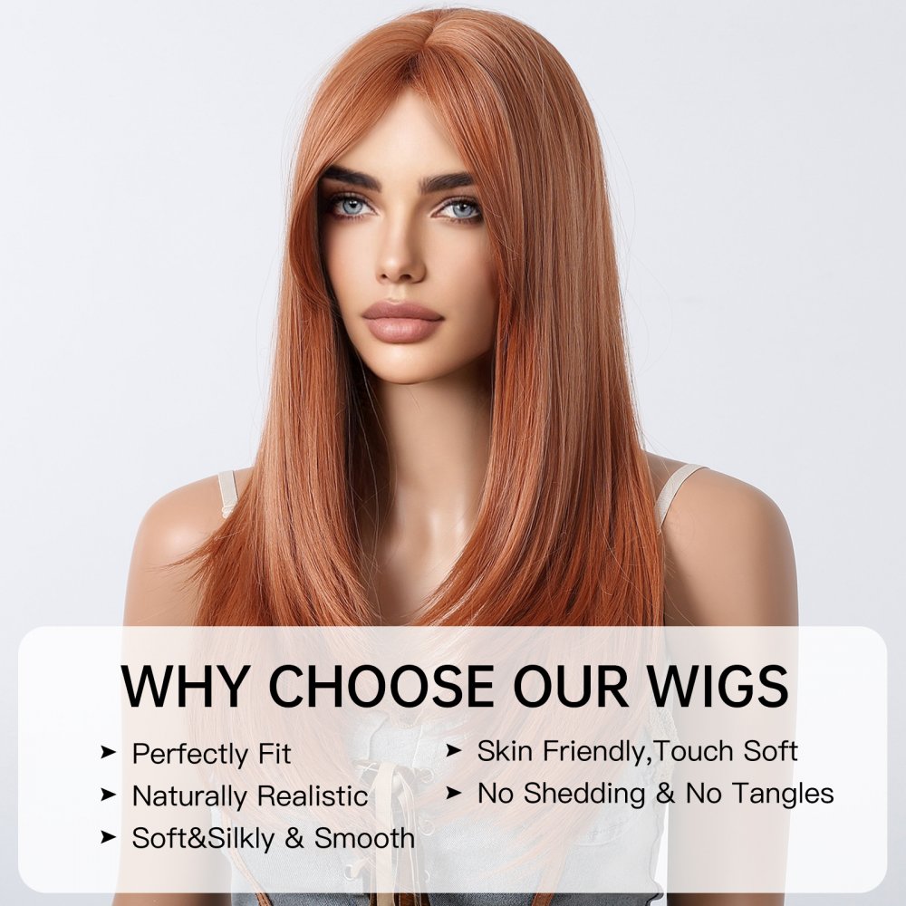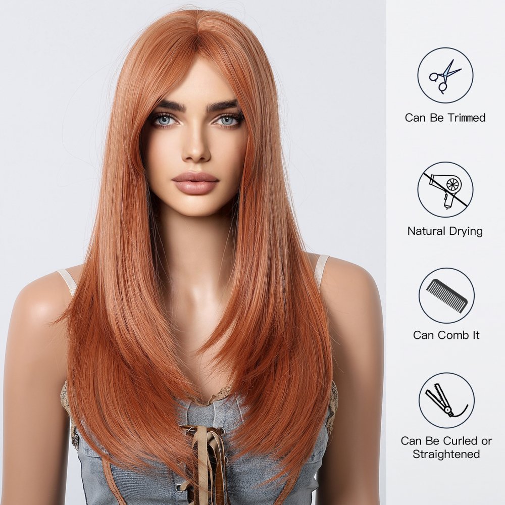 Medium Length Straight Orange Wig