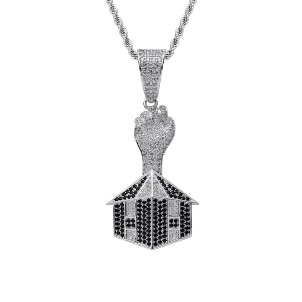 Men's fist house pendant real gold electroplated copper inlaid zircon hiphop necklace
