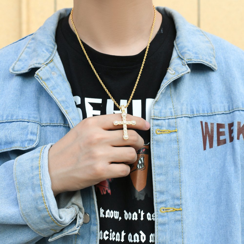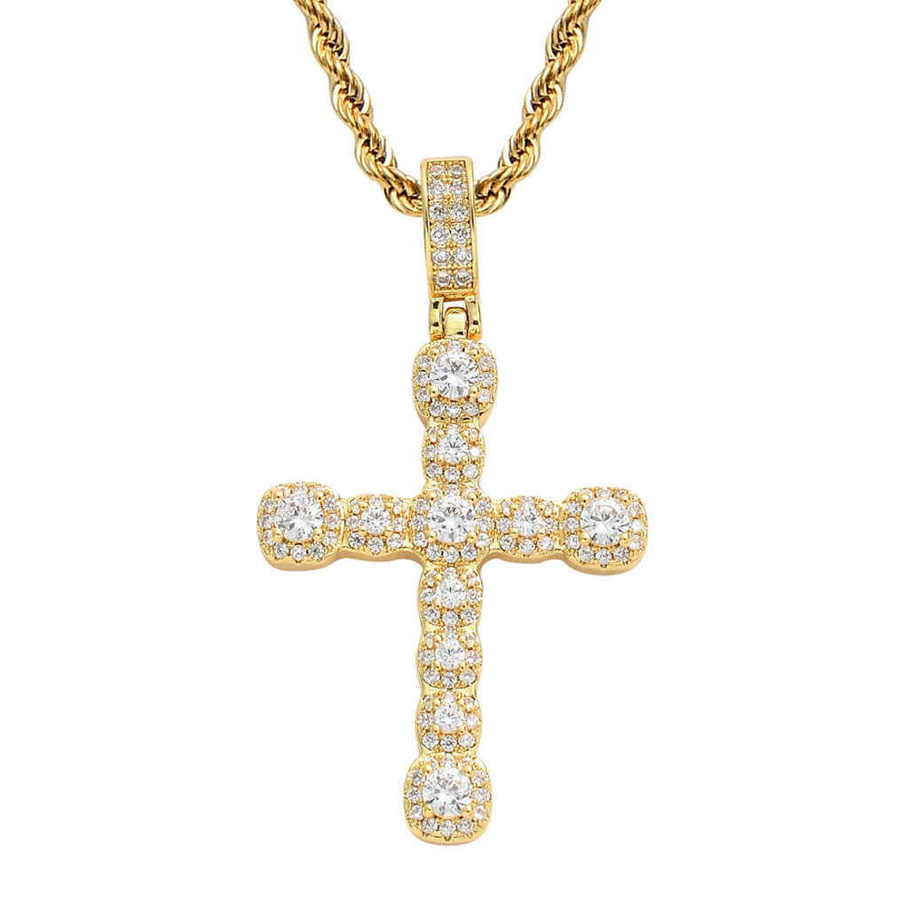 Micro-inlaid zircon cross pendant hiphop personality trendy men and women universal hip-hop necklace