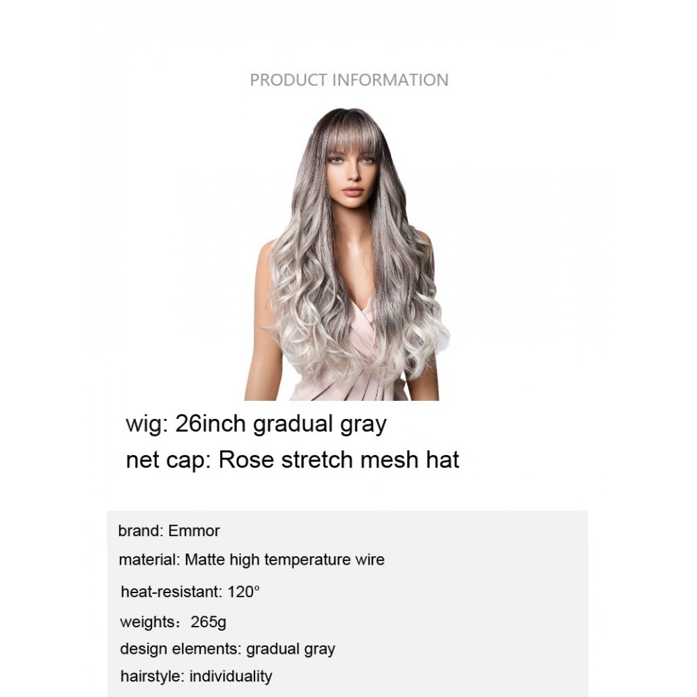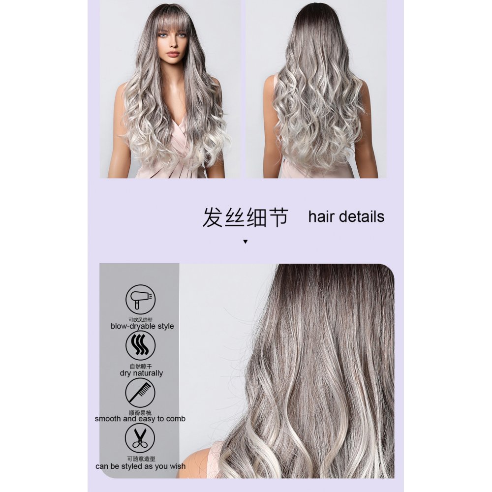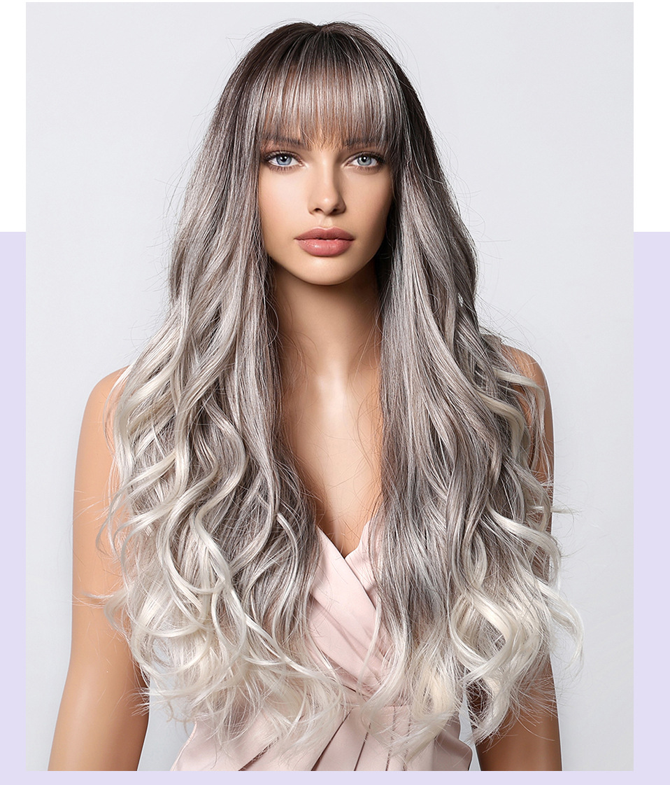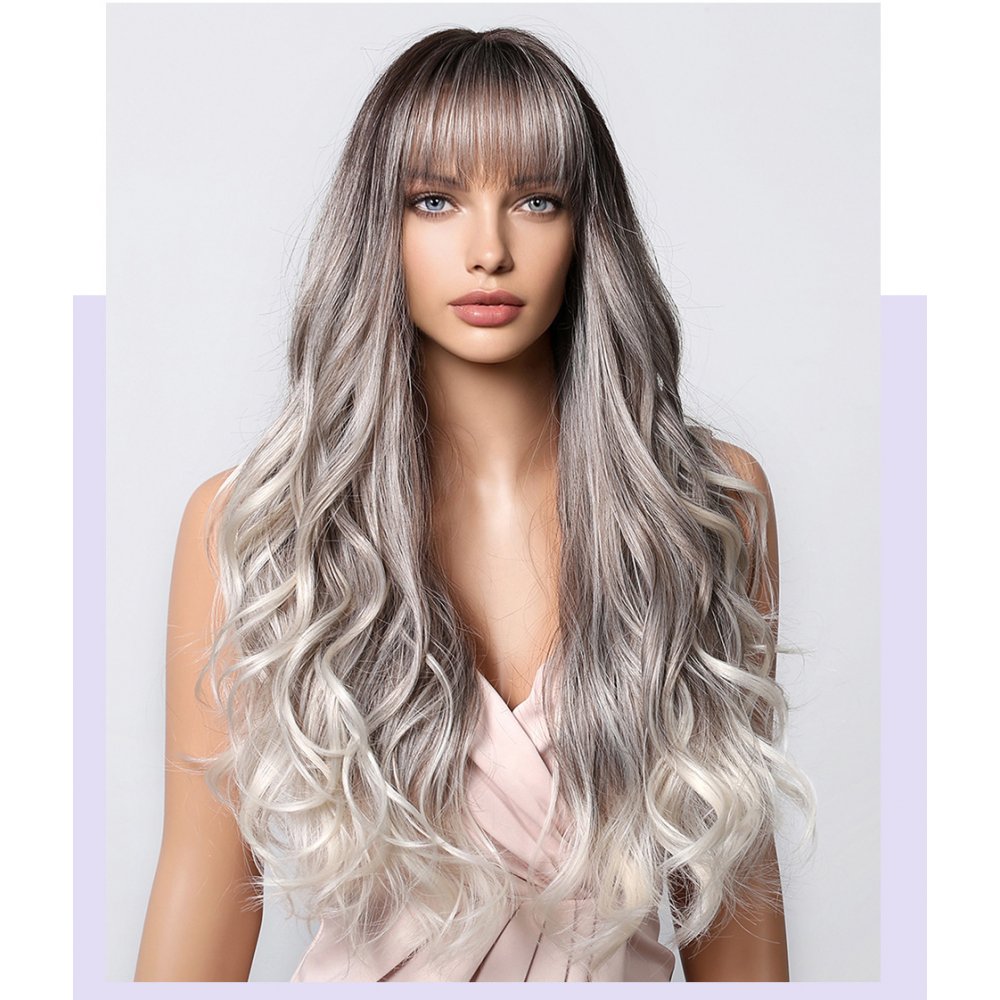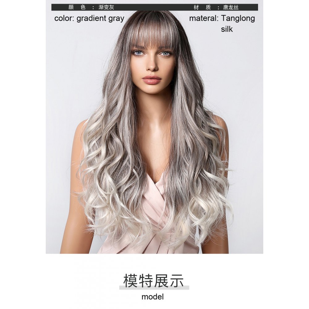 Natural Realistic Air Bangs Gradient Gray Big waves wig