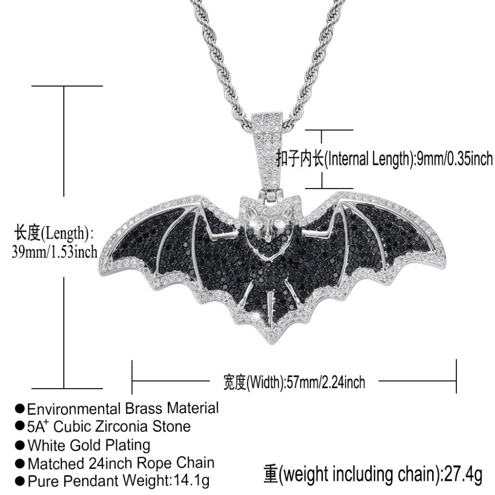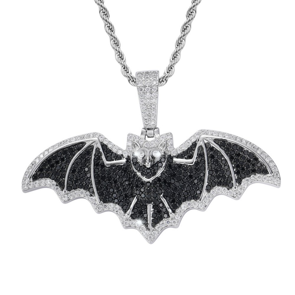 New bat hip-hop necklace European and American men's trendy cool necklace micro-inlaid zircon street dance rap pendant