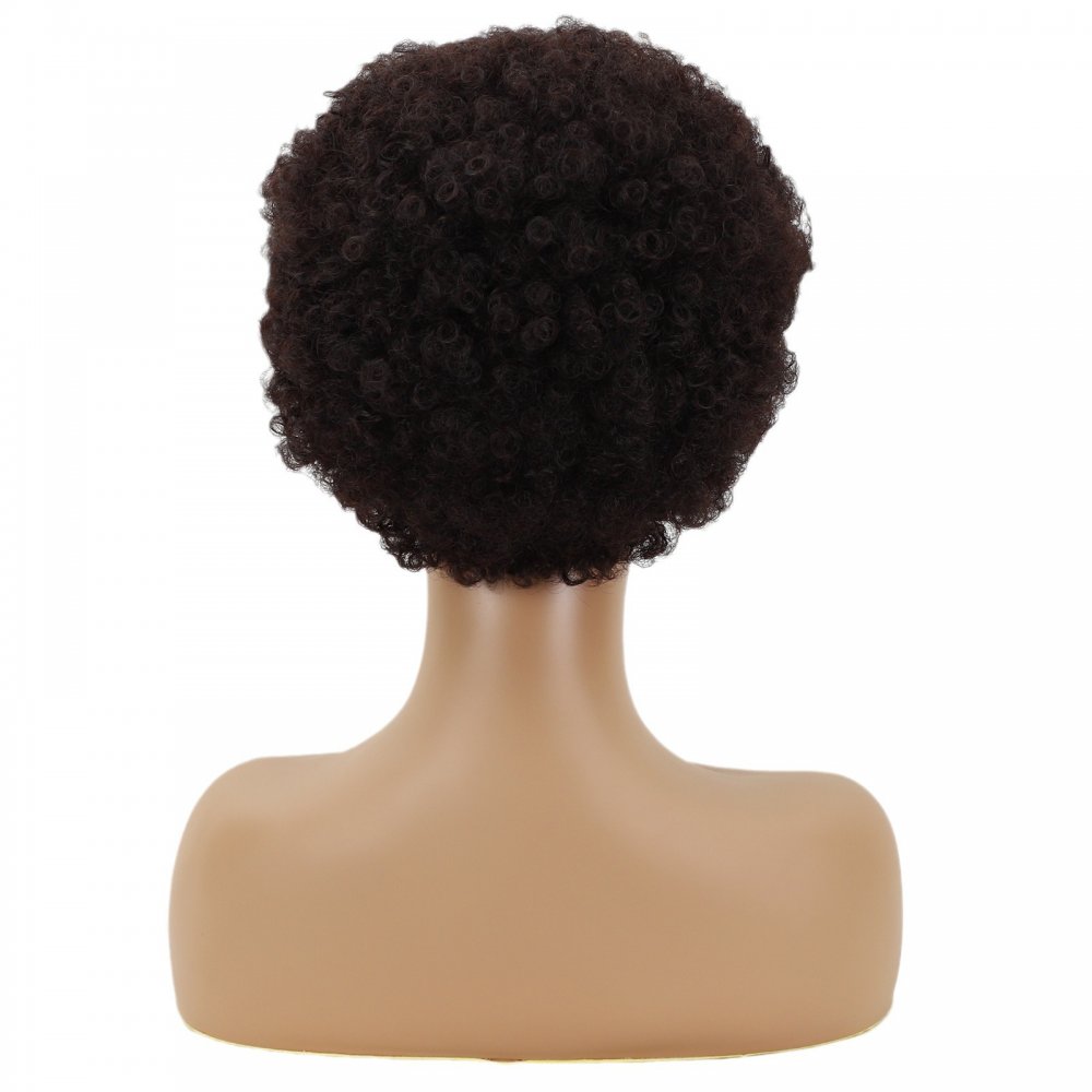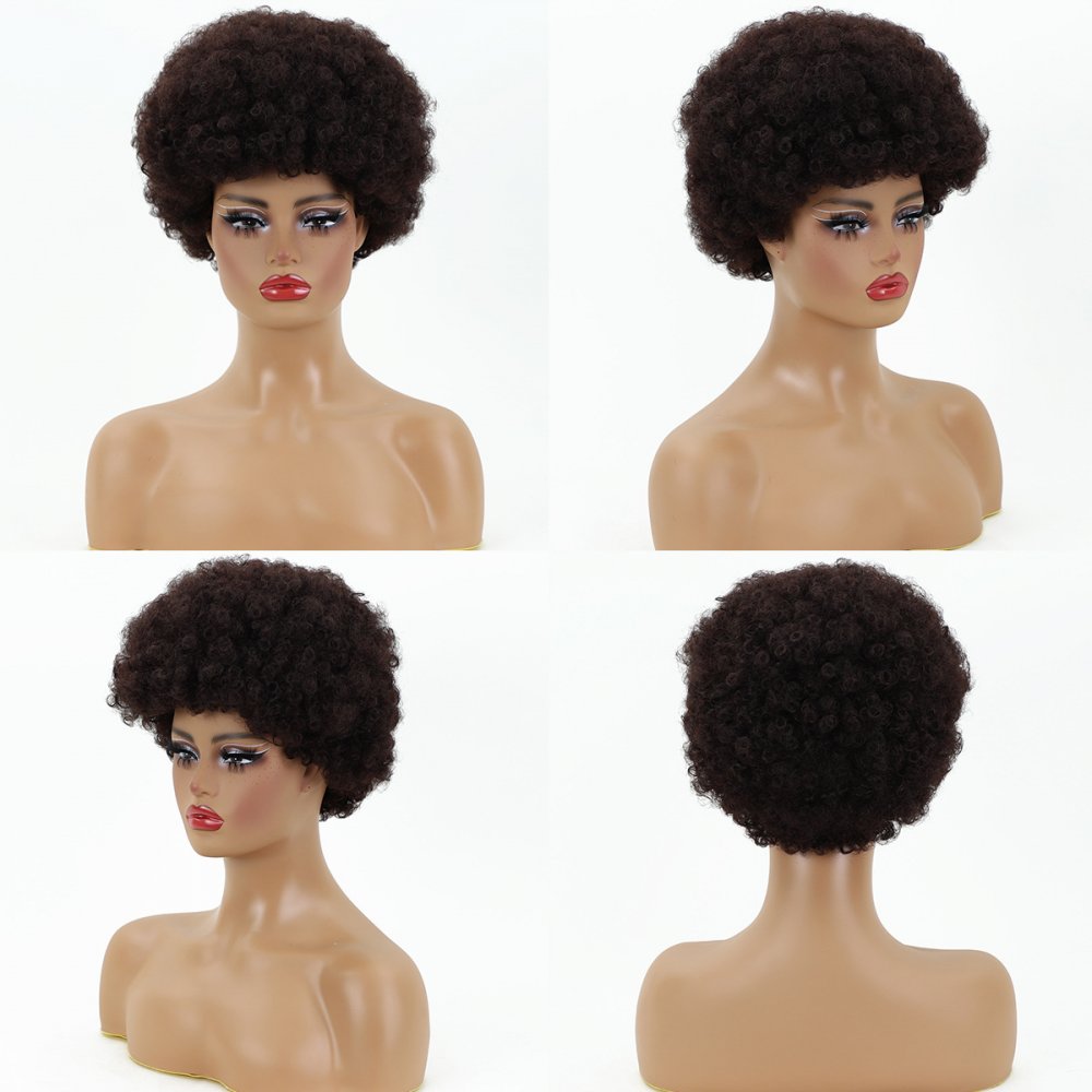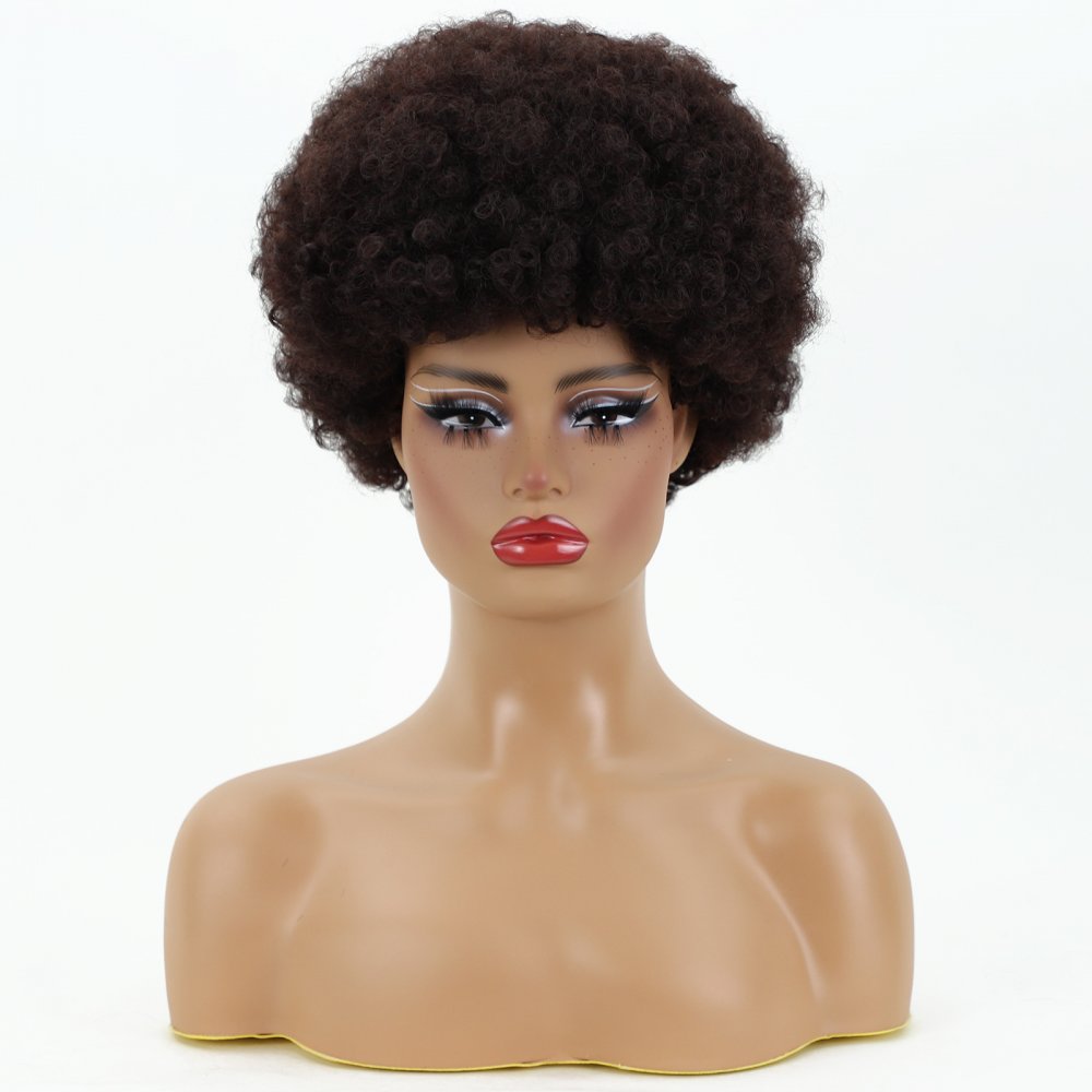 New Fashion Explosion head Fluffy chemical Fiber Dark Brown Curly Wig