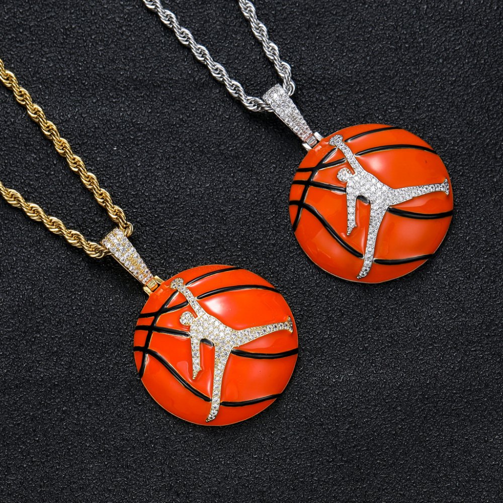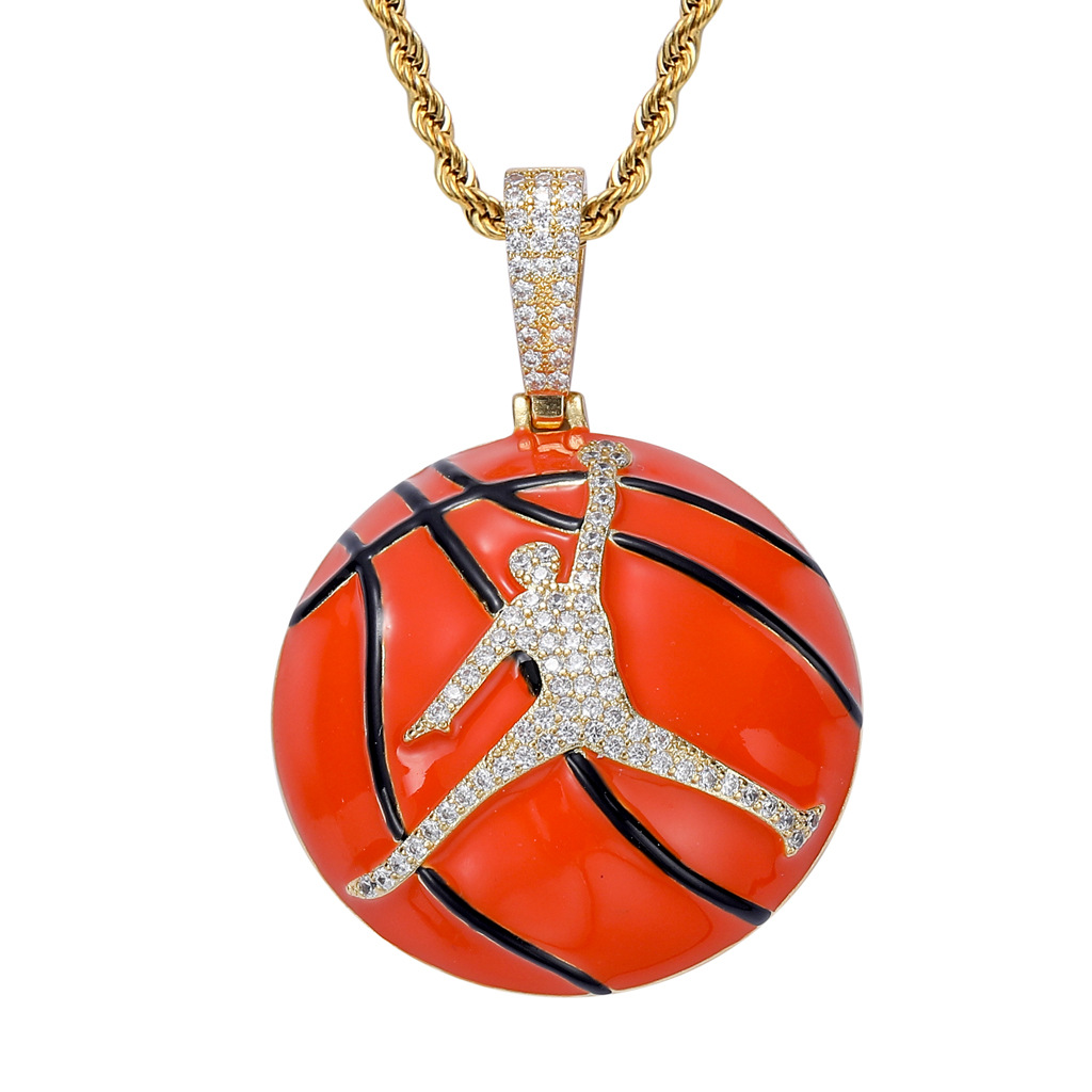 New NBA basketball pendant 18K gold-plated micro-inlaid zircon hiphop hip-hop sports men's necklace