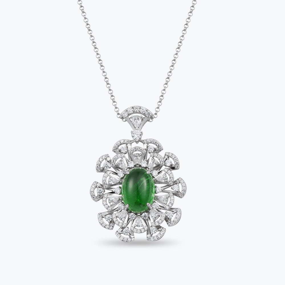 New S925 silver cultured emerald flower-shaped exquisite female necklace