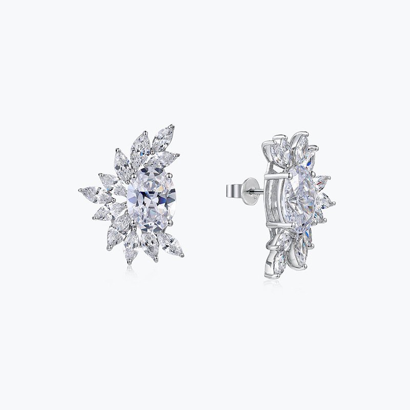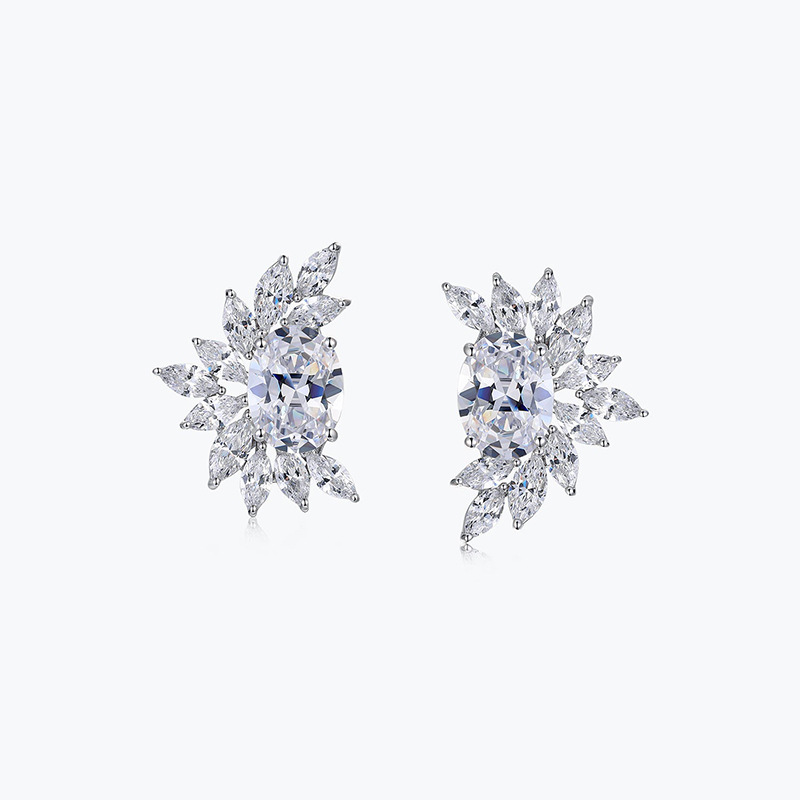 New silver S925 luxury white high carbon diamond earrings European and American light luxury temperament ice flower cut earrings