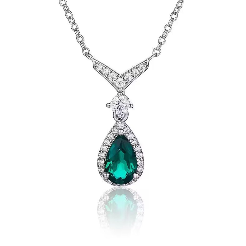 New Sterling Silver Teardrop Shape 925 Silver Necklace Female Cultivated Emerald Pendant Original Design Necklace