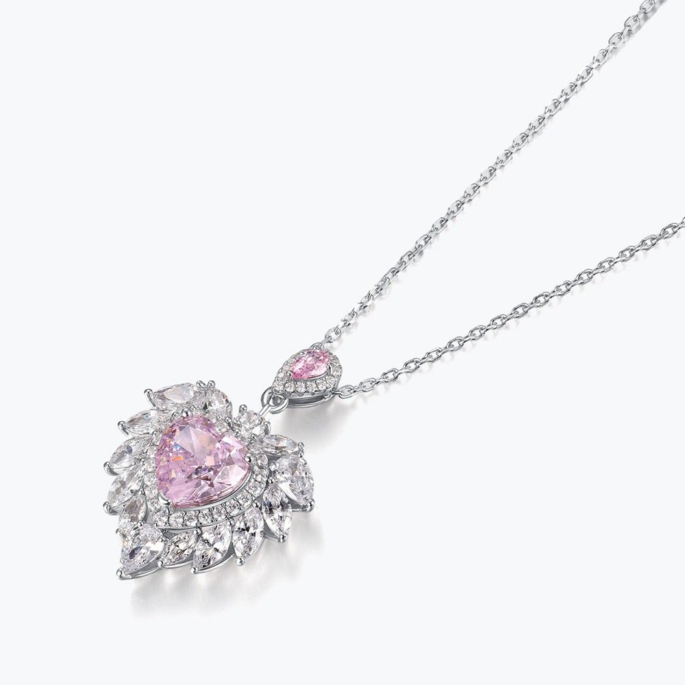 Niche high-end sweet style S925 silver inlaid heart-shaped pink zircon pendant necklace light luxury exquisite clavicle chain
