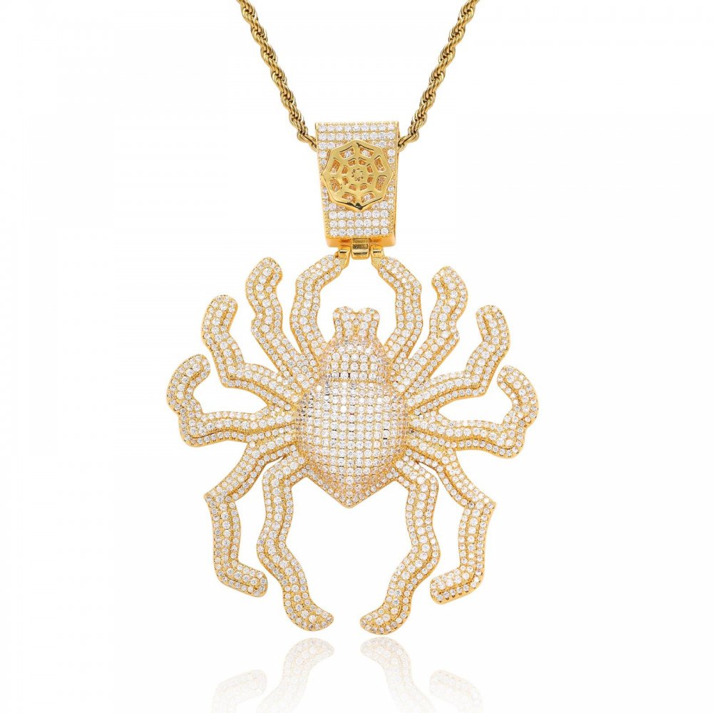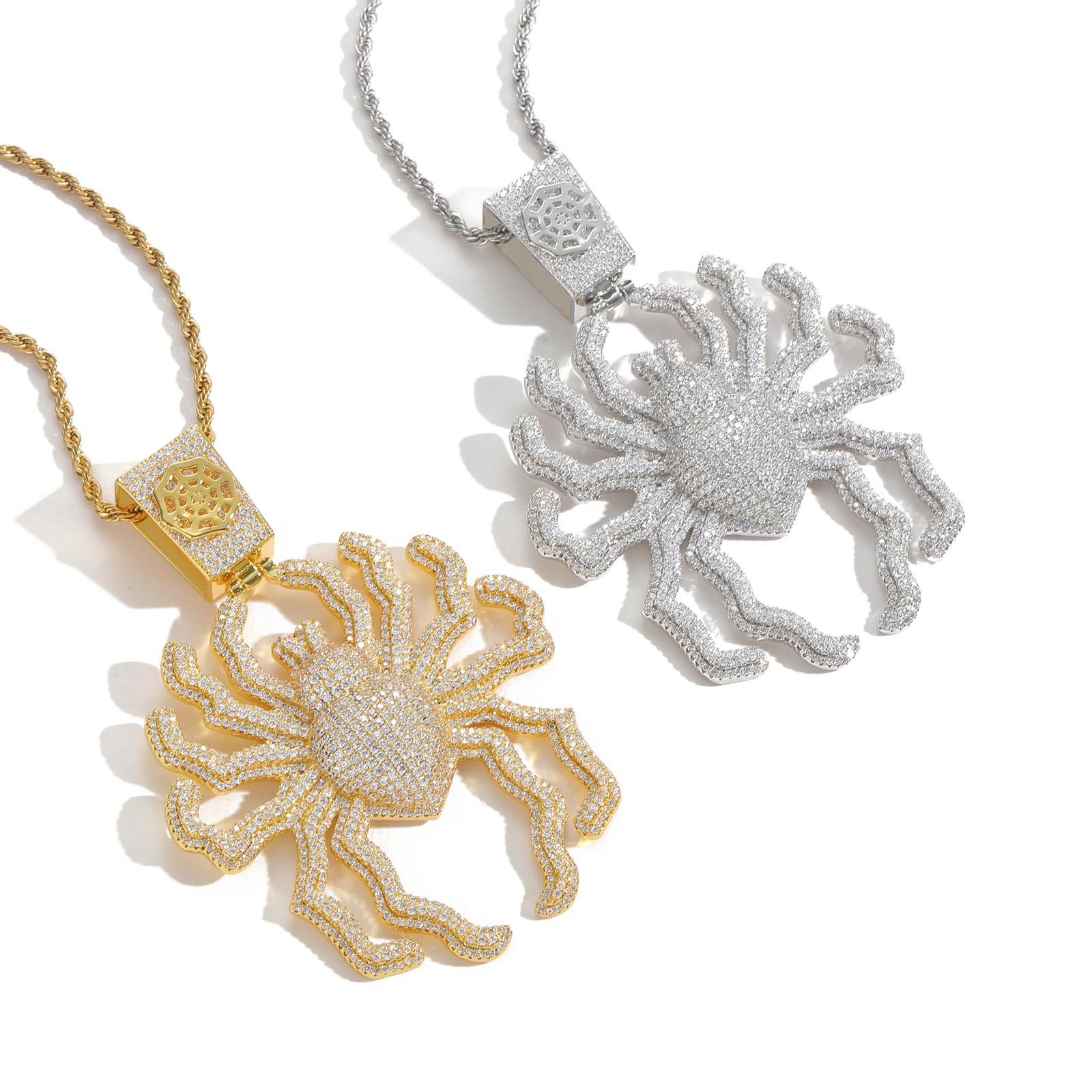 Oversized spider pendant with zircon inlay, exaggerated personality, men's hip-hop necklace