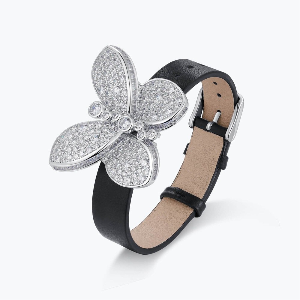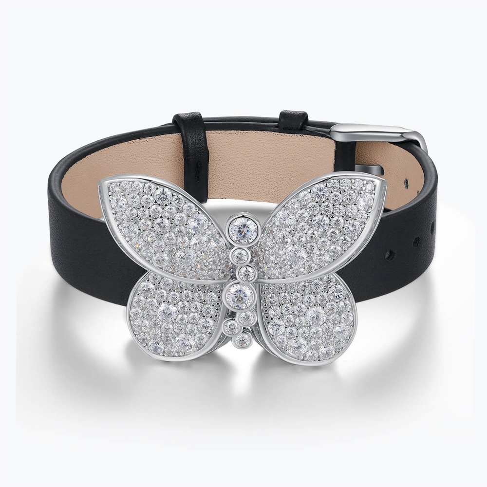 Personalized fashion 925 silver full diamond inlaid zircon genuine leather men and women white butterfly bracelet