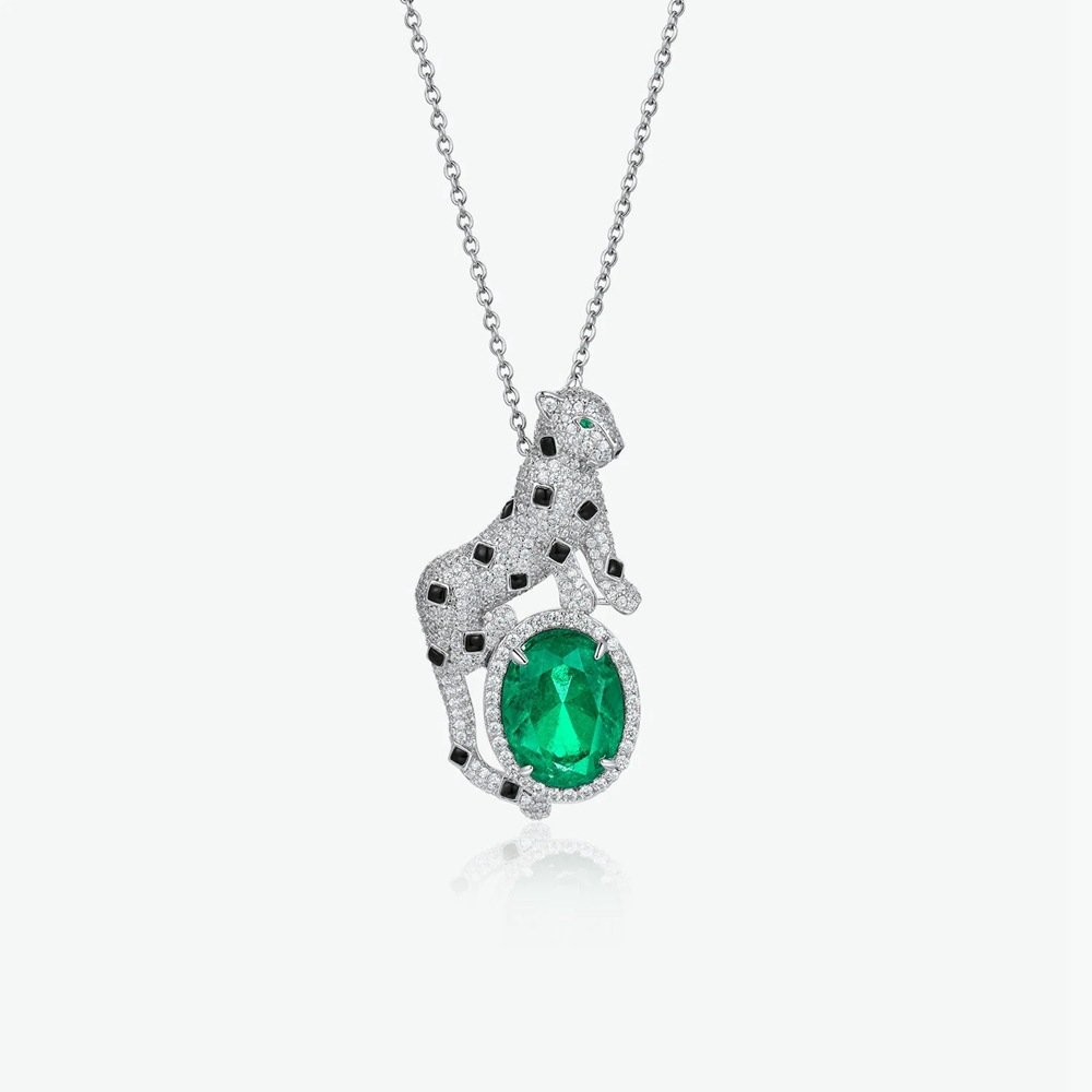 Personalized trendy 925 cheetah necklace inlaid with green zircon