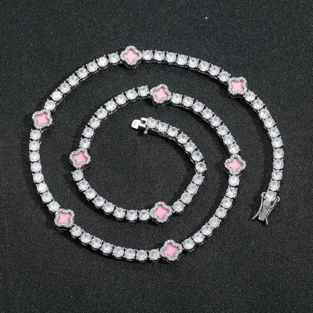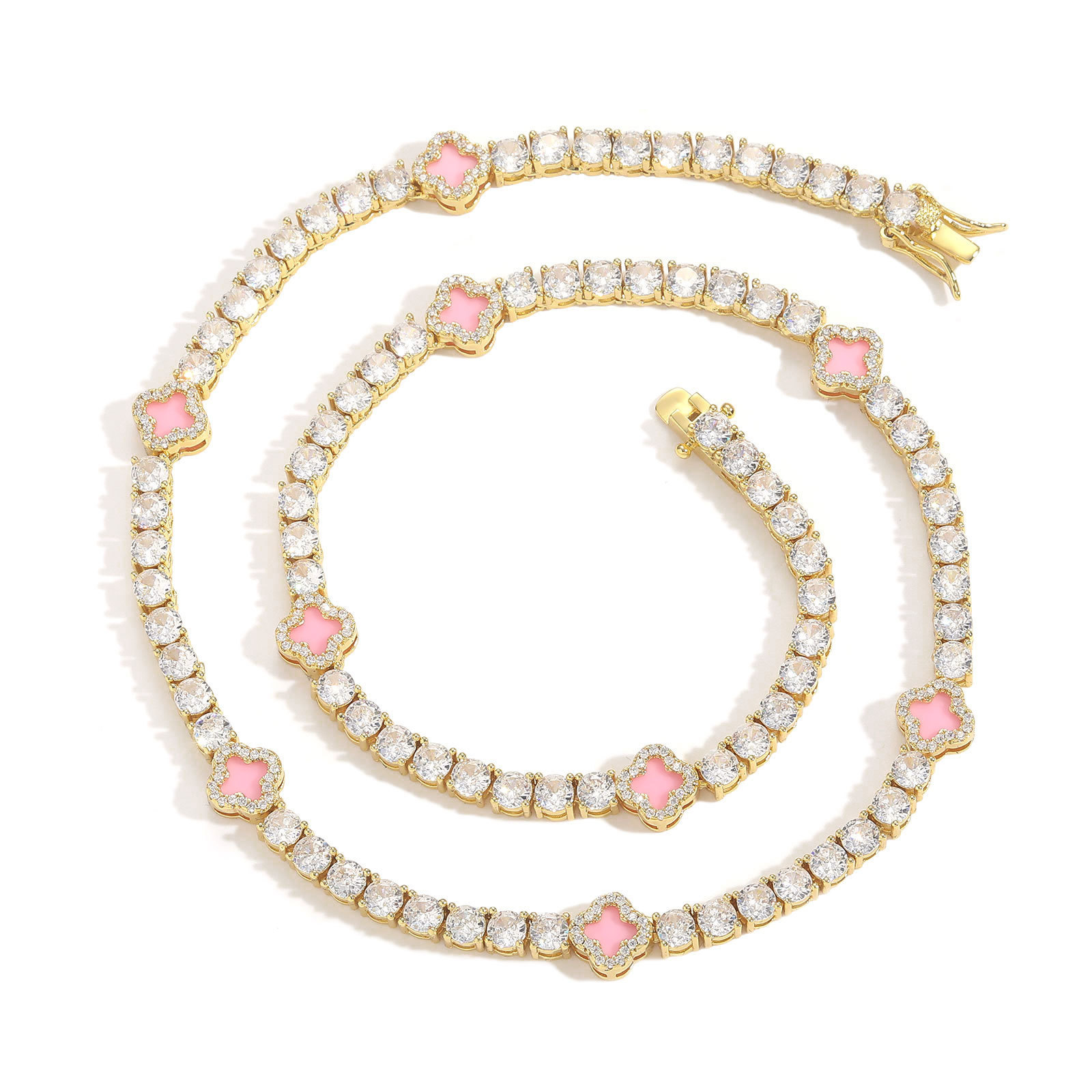Pink four-leaf clover tennis chain diamond necklace exquisite high-grade clavicle chain accessories