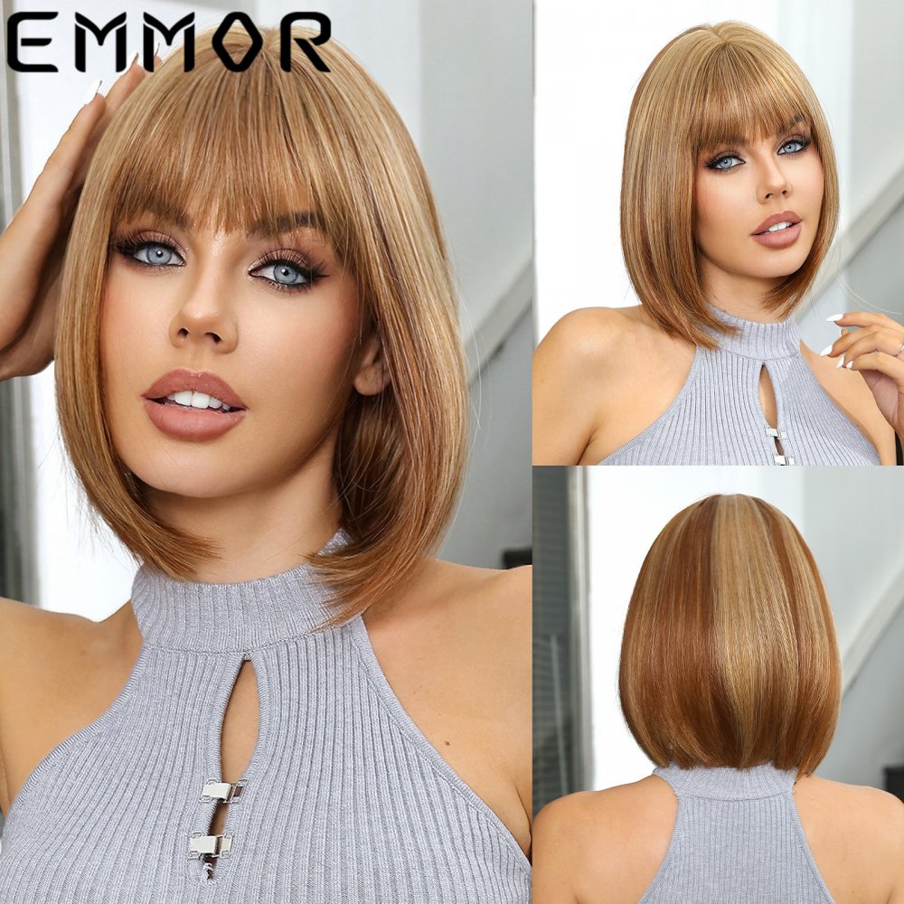 Pure Desire Straight Hair Bob Hair Air Bangs Age Reduction New Full Headgear Wigs