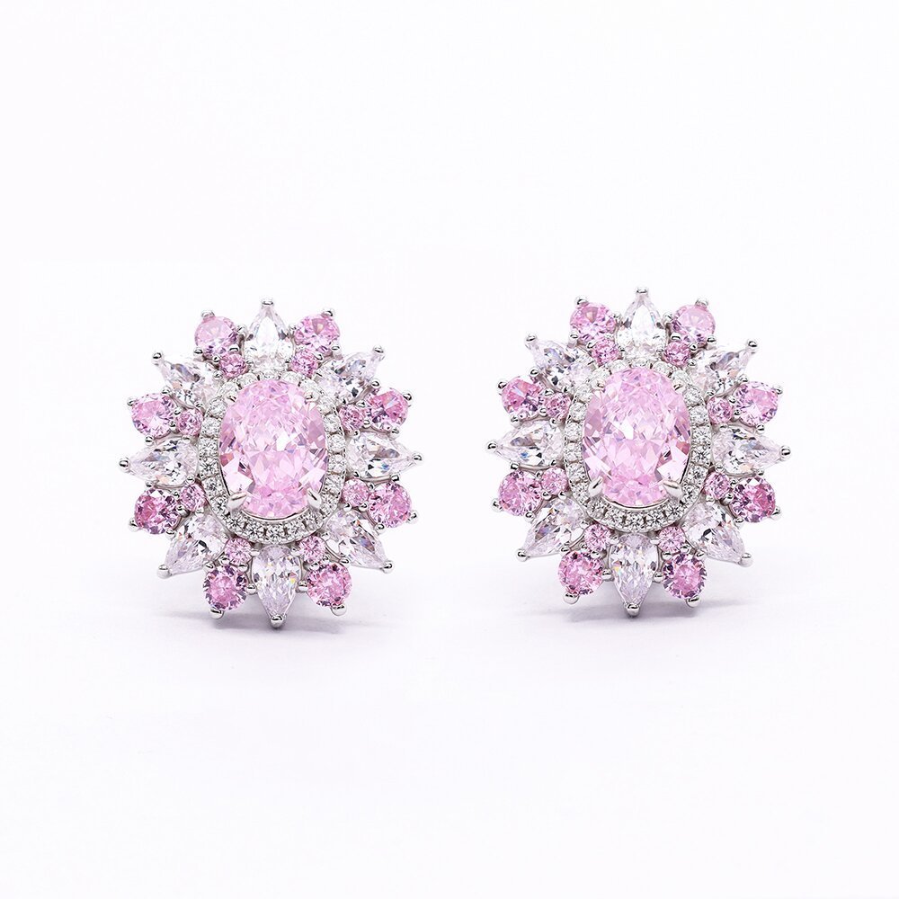 S925 silver earrings high-end luxury cherry blossom pink earrings light luxury style earrings