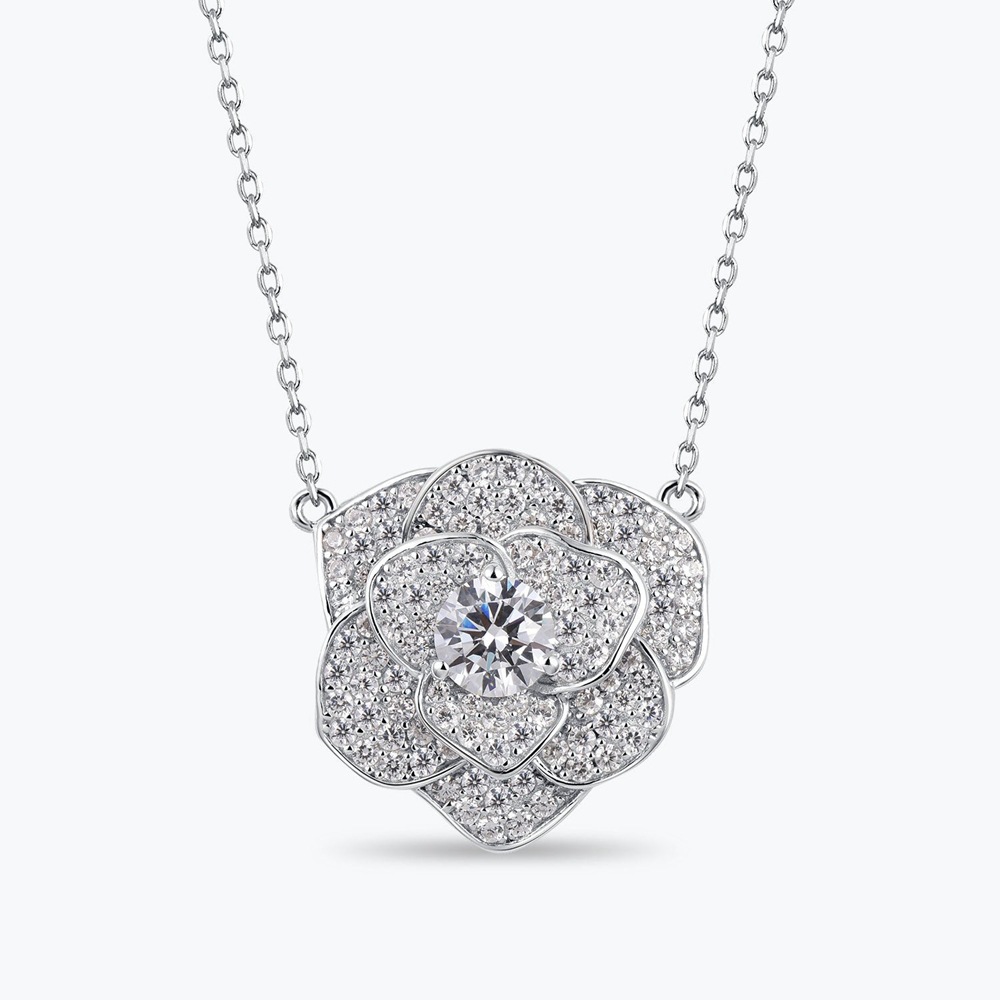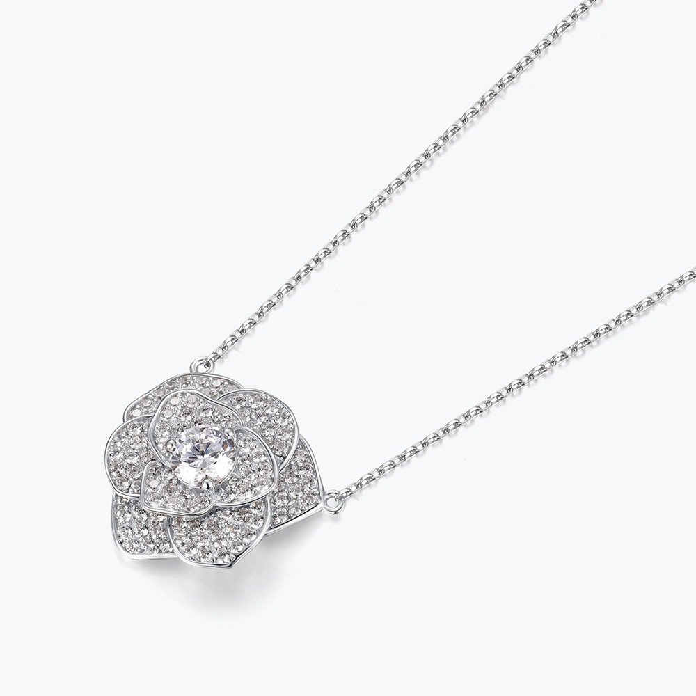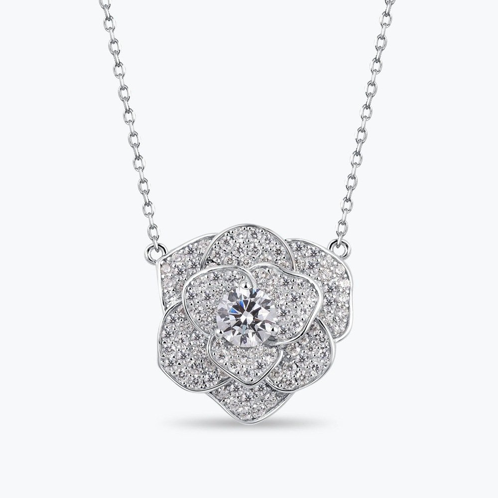 Sparkling Rose Flower Necklace Female S925 Silver Gold-plated Rose Flower Zircon Full Diamond Clavicle Chain