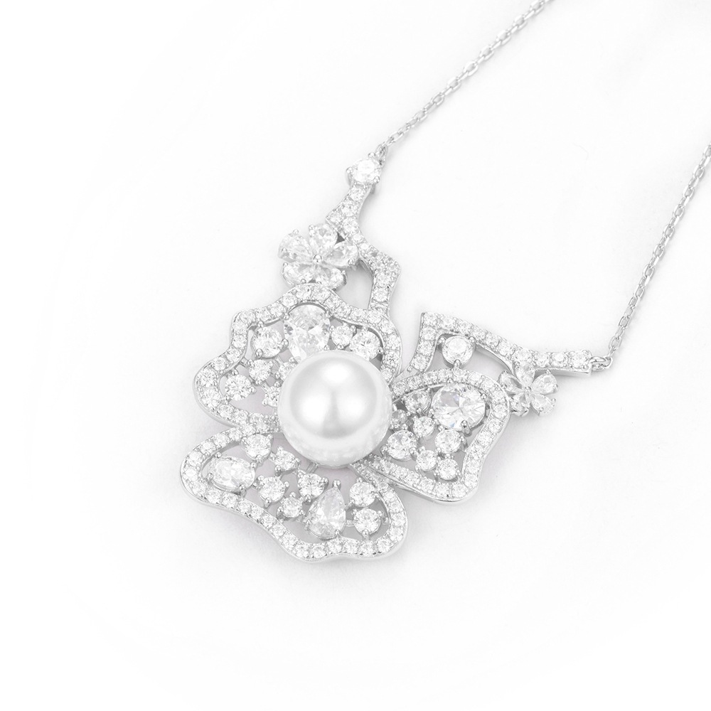 Synthetic pearl flower necklace for women, new style, simple temperament, advanced design, light luxury clavicle chain