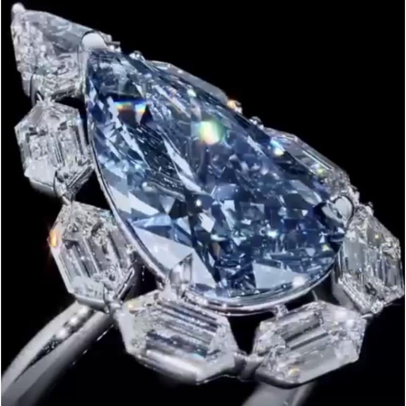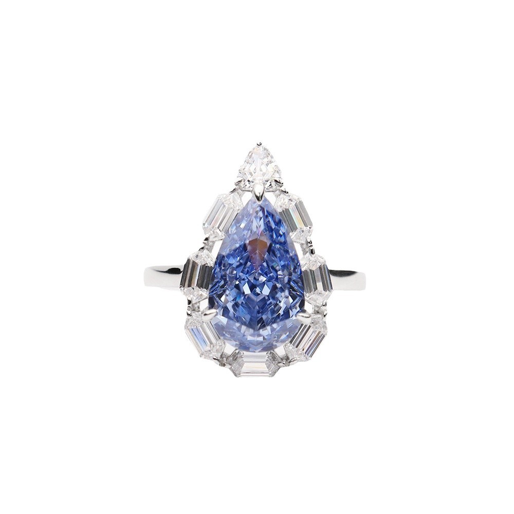 Water drop ice flower cut synthetic blue diamond 925 silver vivid blue high carbon diamond pear-shaped female ring simple style